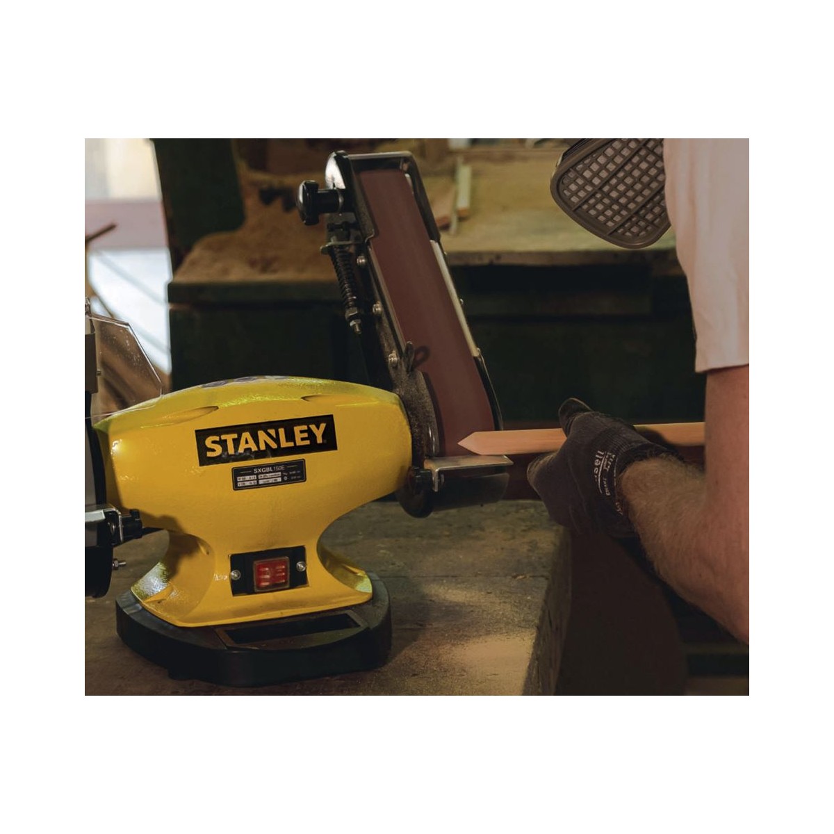 La meuleuse d'établi STANLEY SXGBL150E est un outil Professionnel au sein de la gamme complète des tourets d'établi STANLEY, elle combine puissance, sécurité et polyvalence, offrant ainsi des performances exceptionnelles pour une variété de travaux de finition au sein de votre atelier. Livrée avec sa bande de ponçage