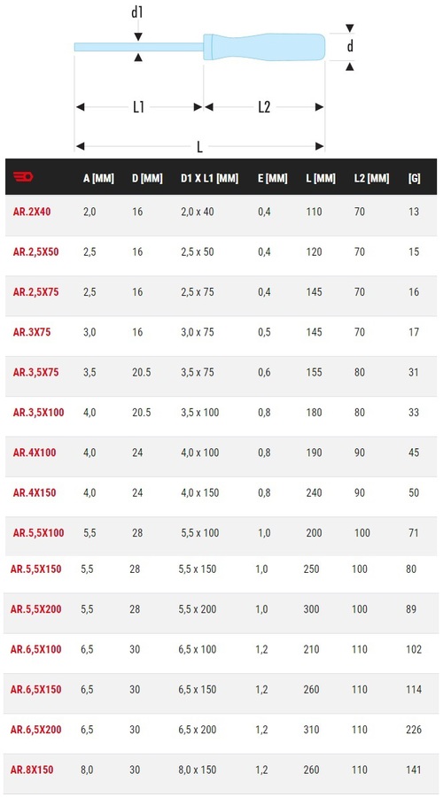 | Libellé | Tournevis ISORYL fente 5,5x200mm longueur totale 300mm - FACOM - AR.5.5X200 |