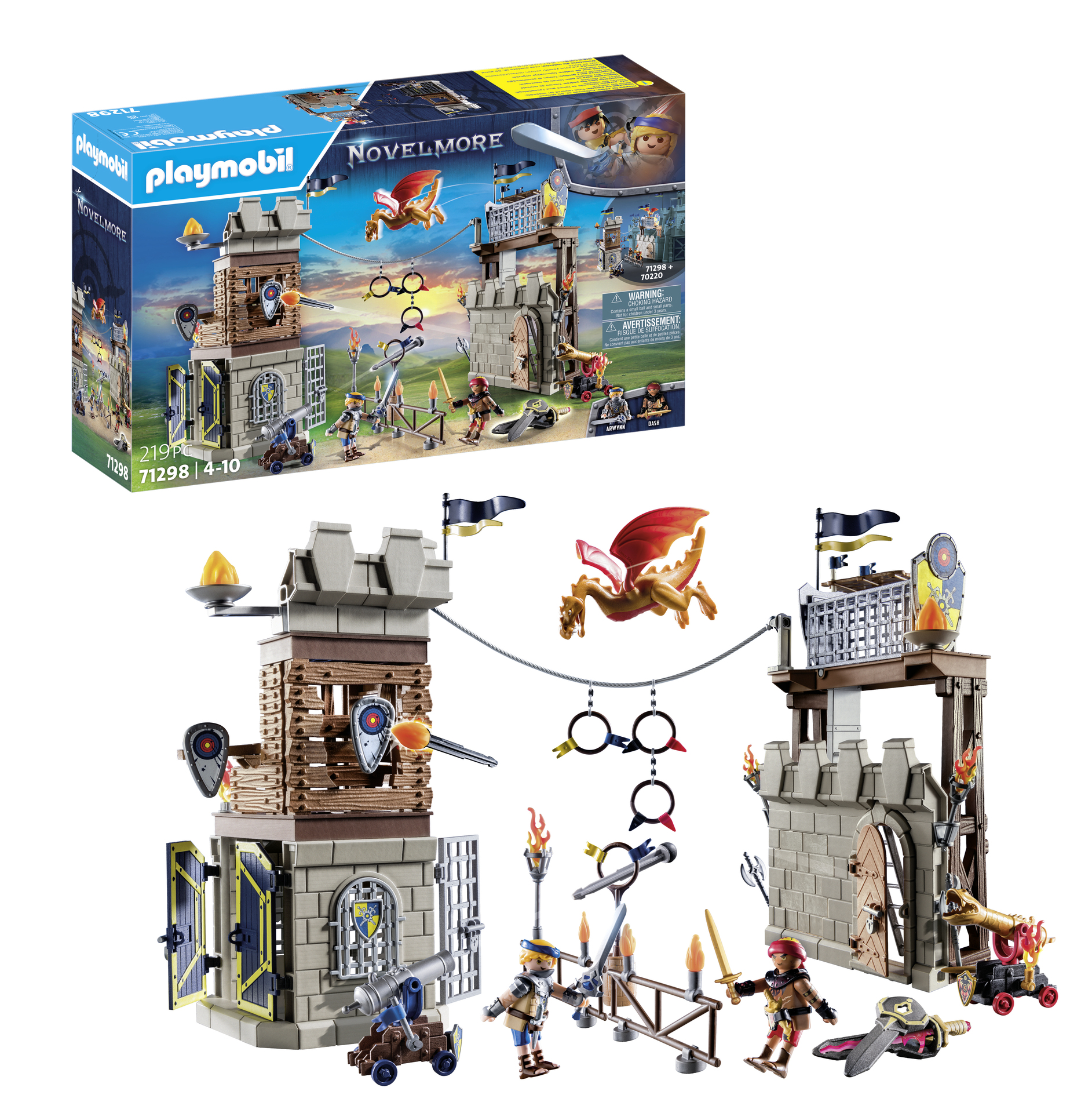 | Plus produit | Tournoi des Chevaliers : Novelmore contre Burnham Raiders. Avec deux chevaliers, un dragon, deux canons et de nombreux accessoires. Deux tourelles p |