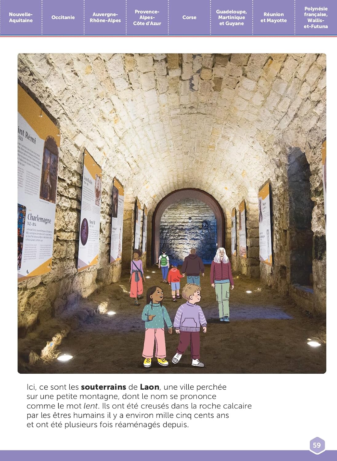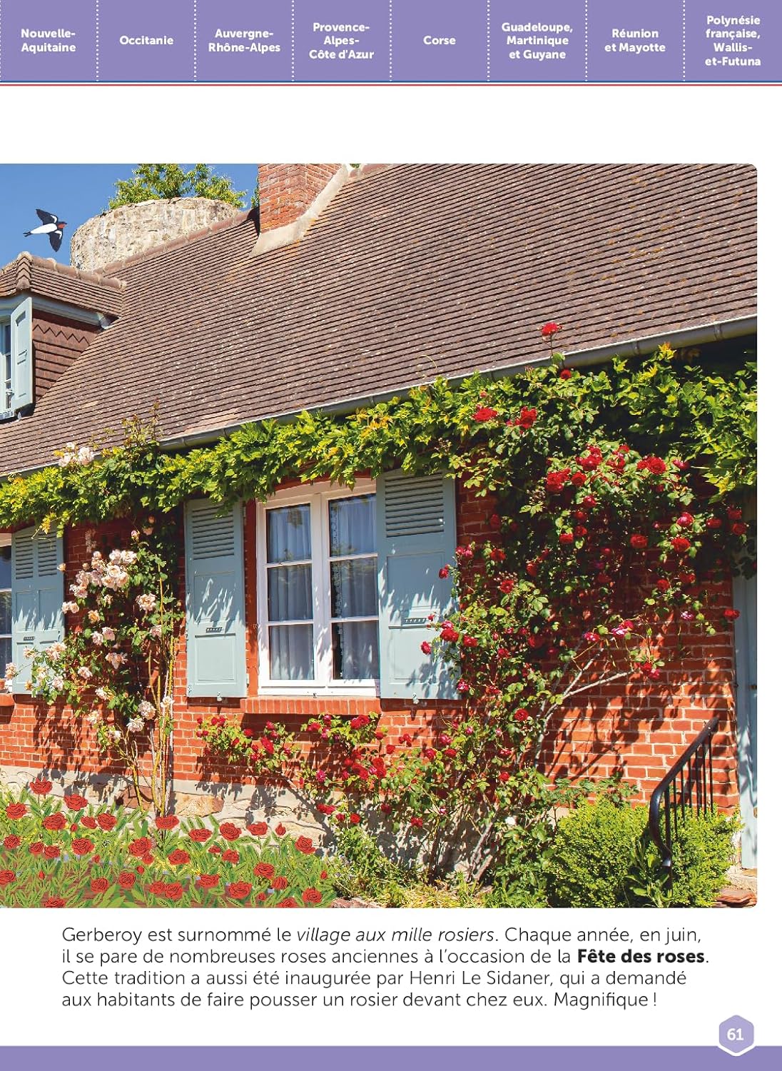 Les Régions françaises à travers le monde. Les enfants découvriront l'Île-de-France, les Hauts-de-France, le Grand Est, la Bourgogne-Franche-Comté, le Centre-Val de Loire, la Normandie, la Bretagne, les Pays de la Loire, la Nouvelle-Aquitaine, l'Occitanie, l'Auvergne-Rhône-Alpes, la Provence-Alpes-Côte d'Azur, la Corse, la Guadeloupe, la Martinique, la Guyane, La Réunion, Mayotte, la Polynésie française et Wallis-et-Futuna. Une lecture facilitée par un système pratique d'onglets colorés !