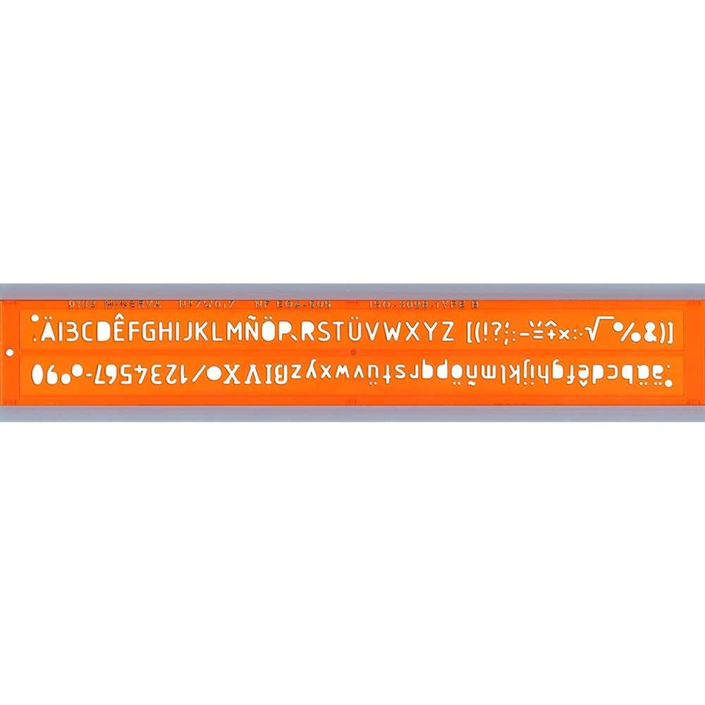 MINERVA - Trace-lettres No 10 (normographe) - Hauteur de l'écriture : 10 mm  . Pour la rédaction des légendes des dessins techniques avec des stylos à encre de chine ou au stylo très fin..