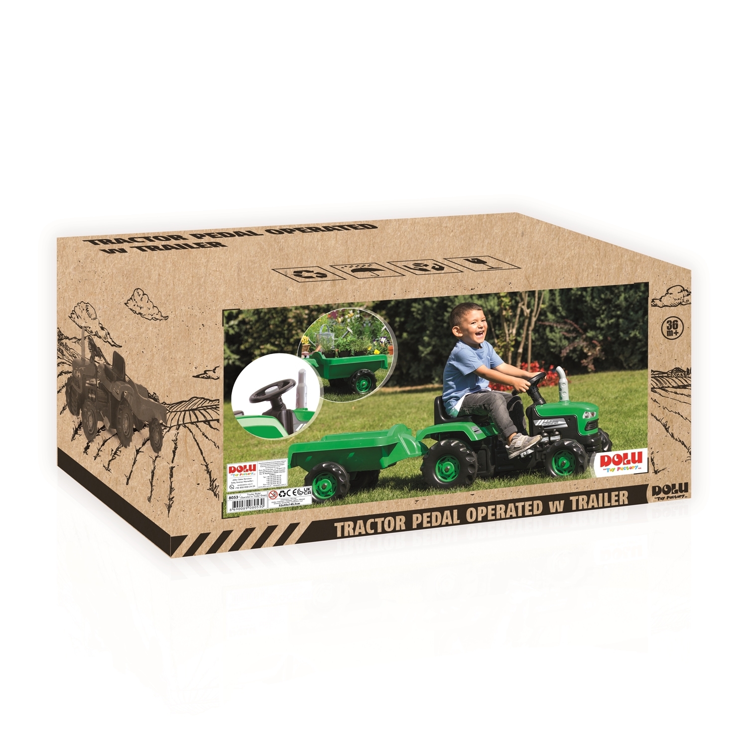 Dolu 8053 Tracteur à pédales avec remorque - - Ce superbe tracteur permet de transporter beaucoup de matériel : Grâce à la voie de garage supplémentaire, vous pouvez transporter une grande quantité de chargement. Le tracteur est équipé d'un pédalier. - De plus, la remorque est très facile à atteler et à dételer ! - - Détails : - - - Pour les enfants à partir de 3 ans - Dimensions : 173 x 52 x 45 cm