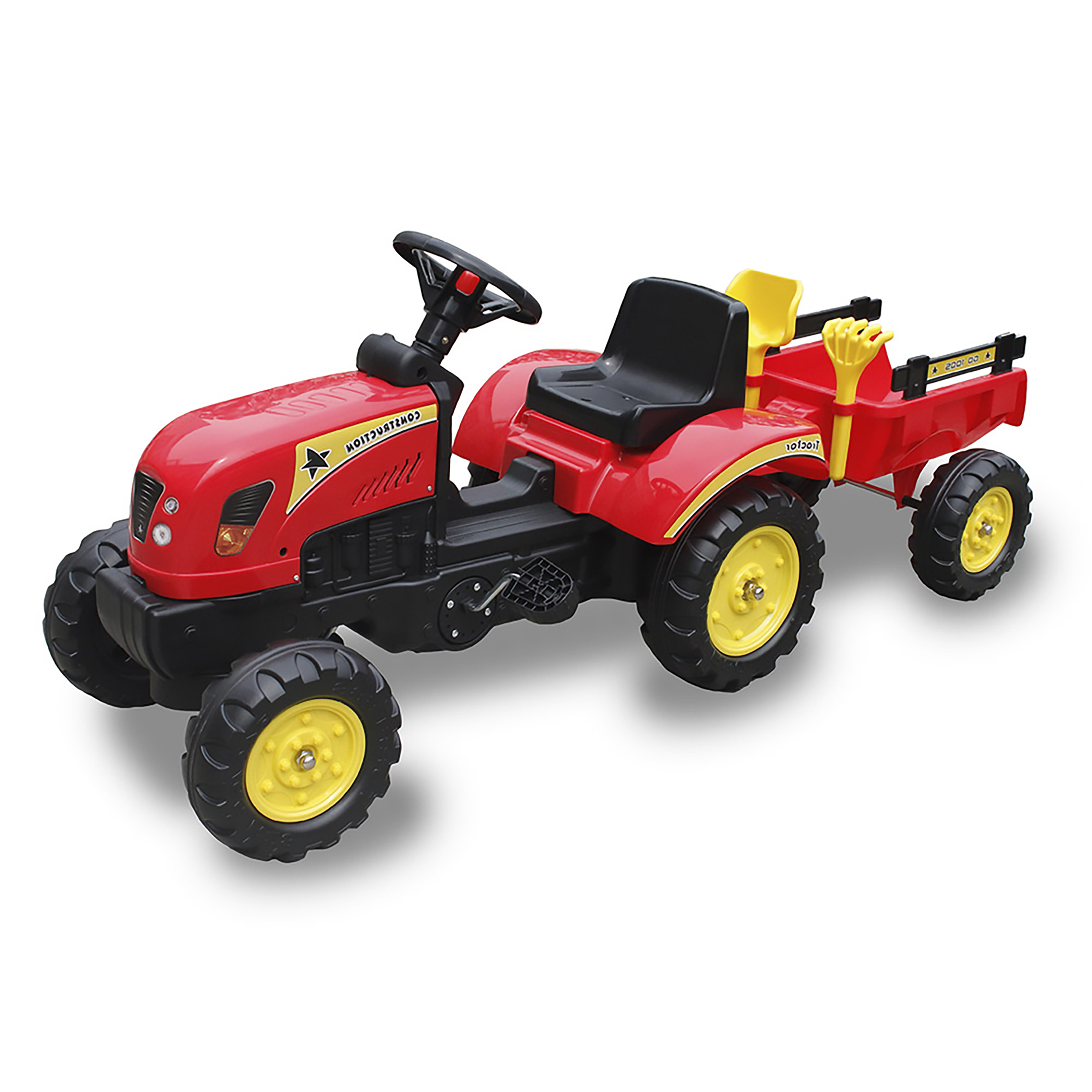 Ce véhicule à pédales est si complet qu'il ressemble à un vrai tracteur. Avec ce tracteur, l'amusement est garanti, avec de nombreux divertissements et de nombreuses heures de jeu. Il comprend une remorque amovible et deux outils pour jouer avec le sable. La structure est faite de fer stable de haute qualité et de plastique renforcé. Convient aux enfants de plus de 3 ans et peut être utilisé à l'intérieur comme à l'extérieur. Ils profiteront de leur temps libre ! Dimensions : 131 x 42 x 51 cm Dimensions de l'emballage : 83 x 42 x 36 cm Poids du produit avec emballage : 7,7 kg Poids du produit sans emballage : 6,5 kg Caractéristiques Tracteur Go Kart rouge : Véhicule à pédale Siège réglable en 2 positions Roues robustes en plastique Couleur : rouge Hauteur de l'assise : 25 cm Roues de 25 cm Poids maximal : 30 kg Âge : +3 ans Avertissement : Non recommandé pour les enfants de moins de 3 ans. Utiliser sous la surveillance d'un adulte. Pour un usage domestique uniquement.
