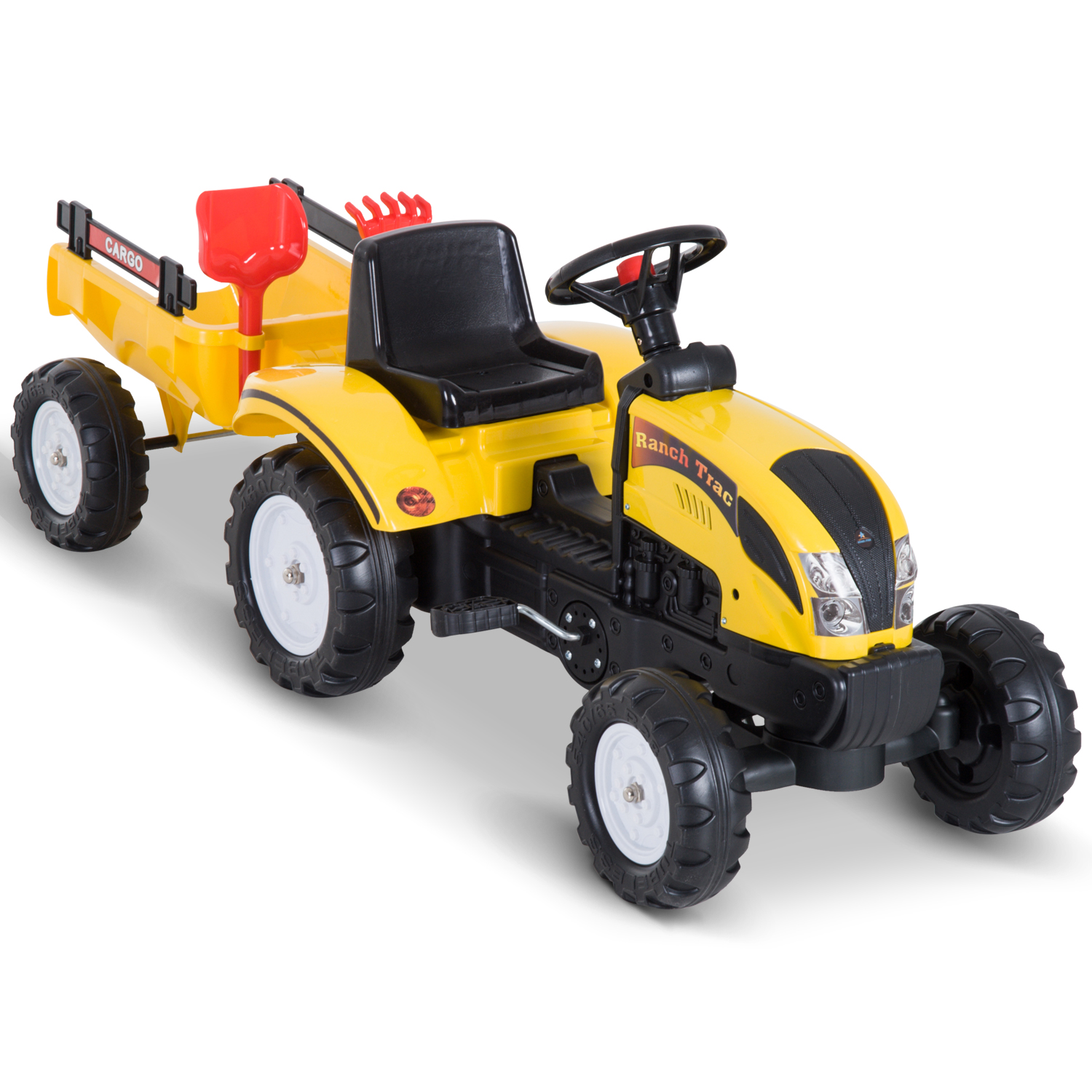 Faites plaisir à votre enfant en lui offrant ce magnifique tracteur à pédales Ranch Trac. Avec son design réaliste, ce modèle convient aux enfants de 3 à 5 ans. Ce jouet va permettre à votre enfant de découvrir les plaisirs de la conduite en tracteur comme un véritable agriculteur ! Doté d'une remorque et d'une pelle et rateau, votre enfant pourra vous aider au jardinage de manière ludique.