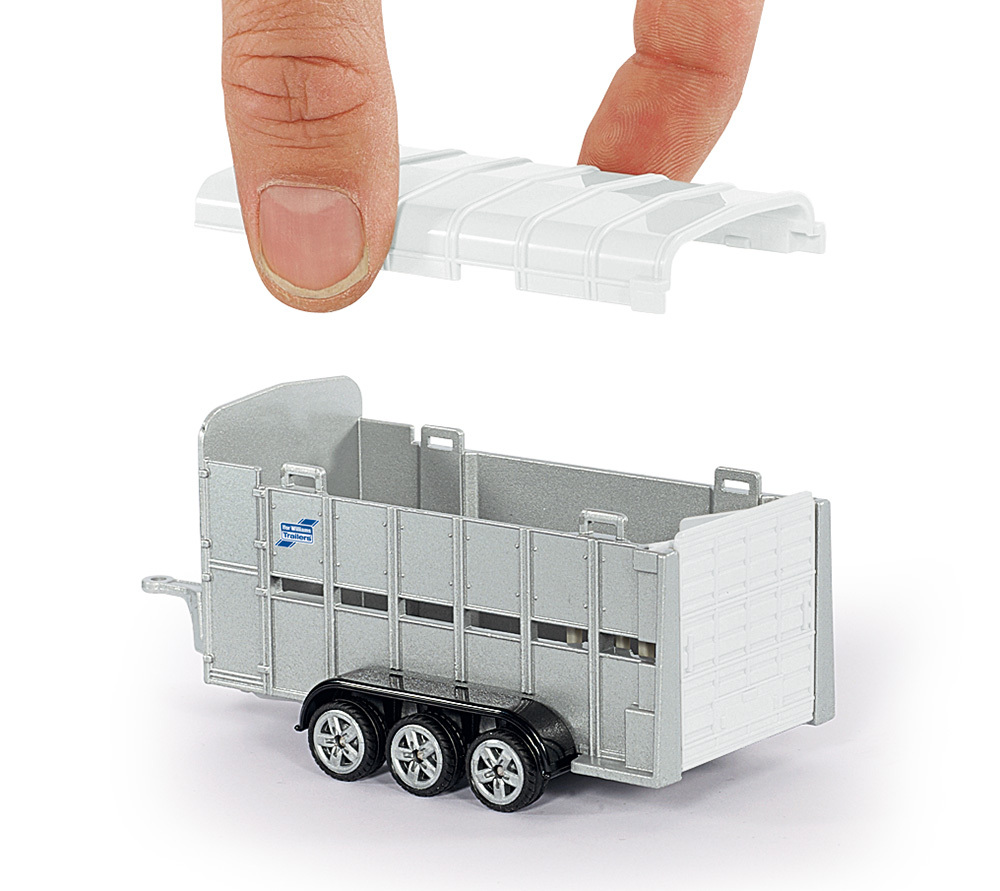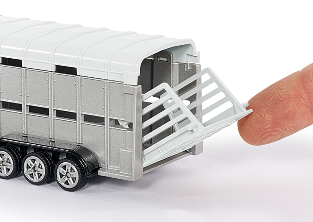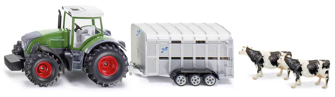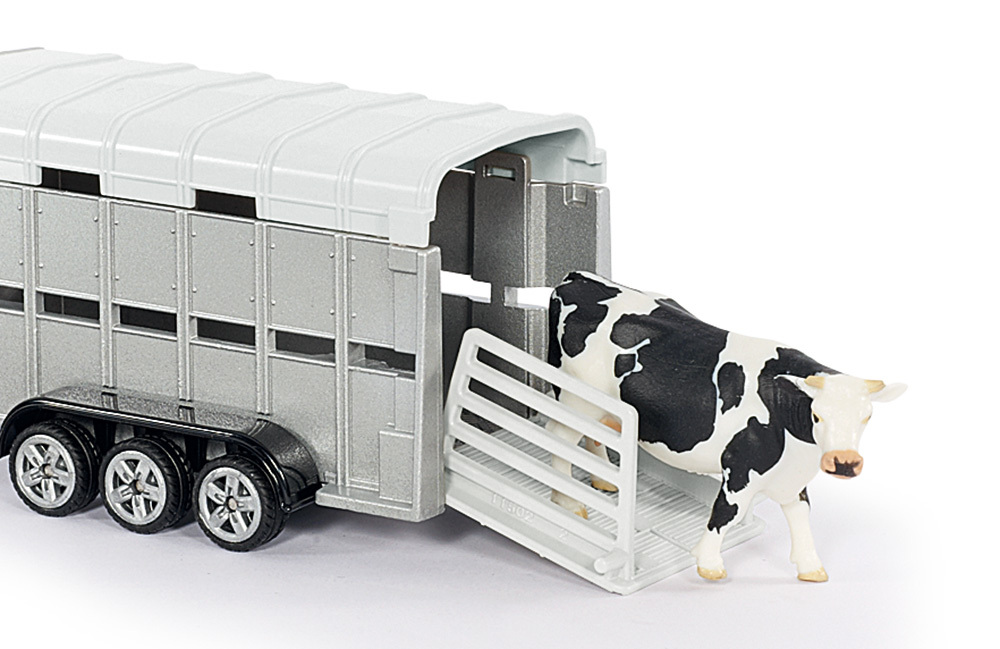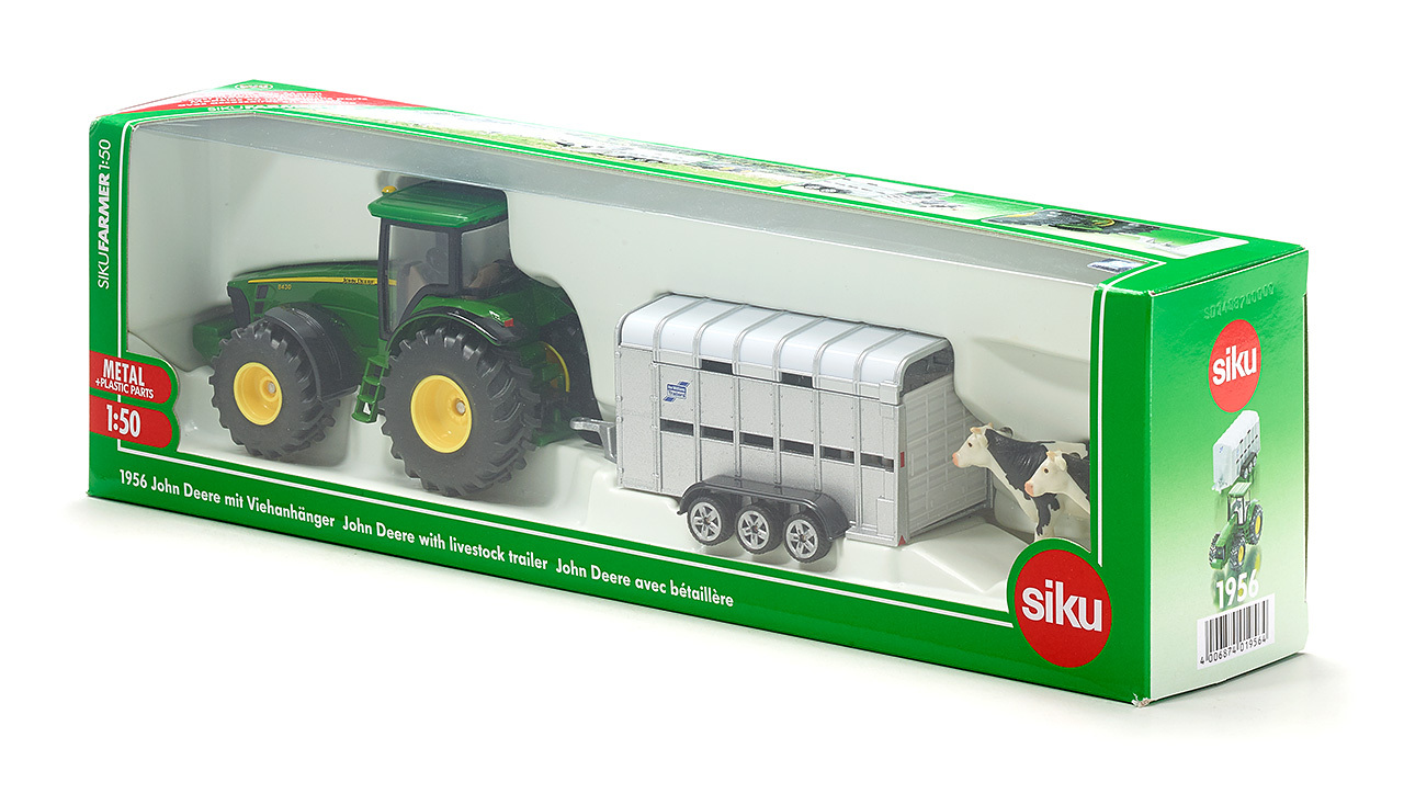 Ce kit idéal pour le jeu avec tracteur John Deere complète la série agricole SIKU à succès à l'échelle 1:50 : John Deere 8430 à énorme capot tracte la bétaillère Ifor-Williams à trois essieux dans l'assortiment de la série économique à succès Farmer 1:50. Pour un jeu réaliste, il est possible de placer les vaches fournies dans la remorque. Pour ce faire, on peut ouvrir la rampe arrière et assurer la sécurité du bétail à l'aide des barrières. Si besoin, enlever le toit de la bétaillère pour mieux placer les vaches. Il en va de même pour la cabine du John Deere. La série Farmer à l'échelle 1:50 s'enrichit ainsi d'un nouvel attelage typiquement agricole !