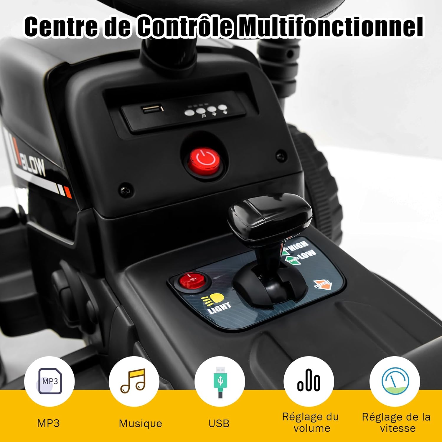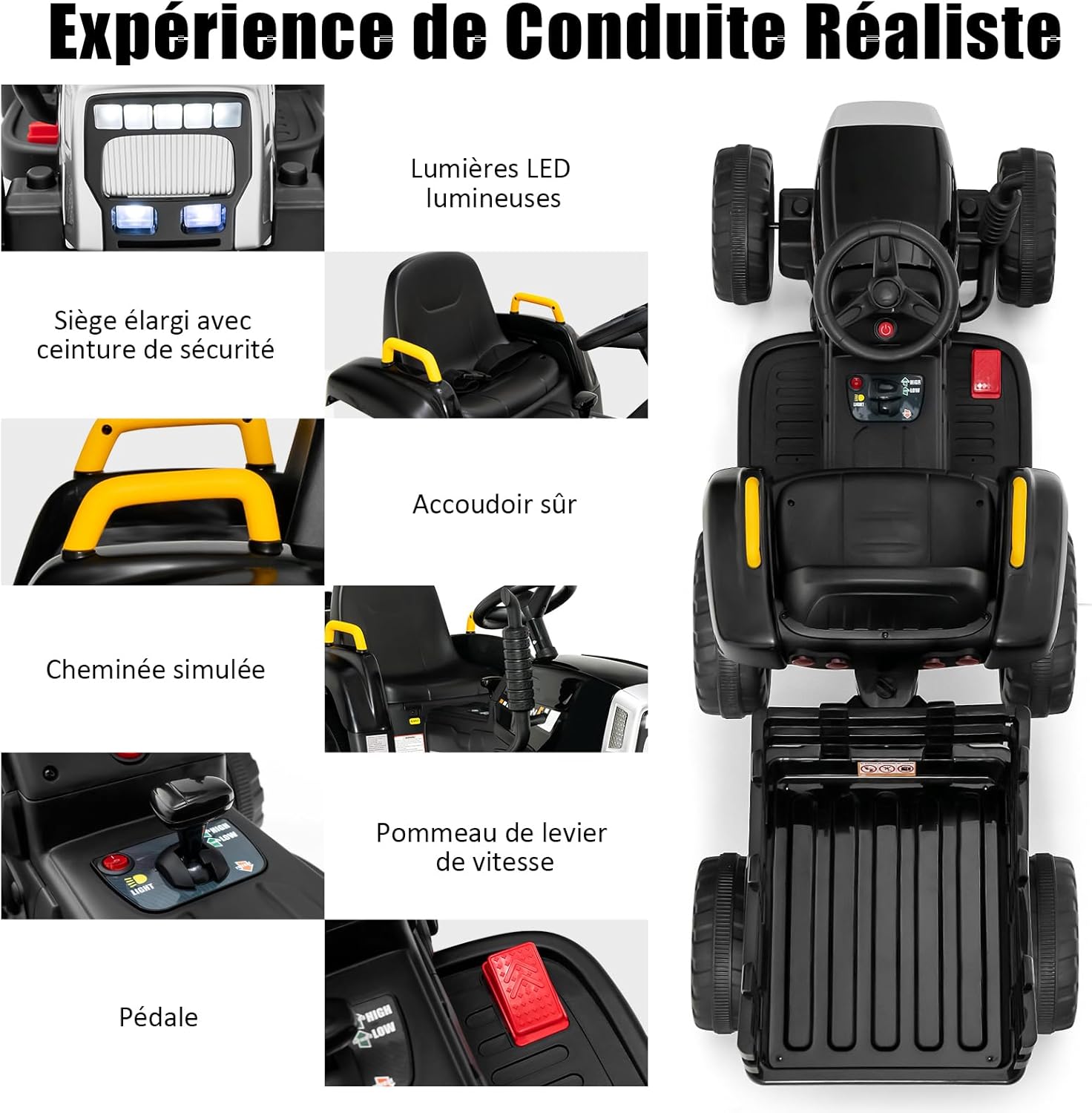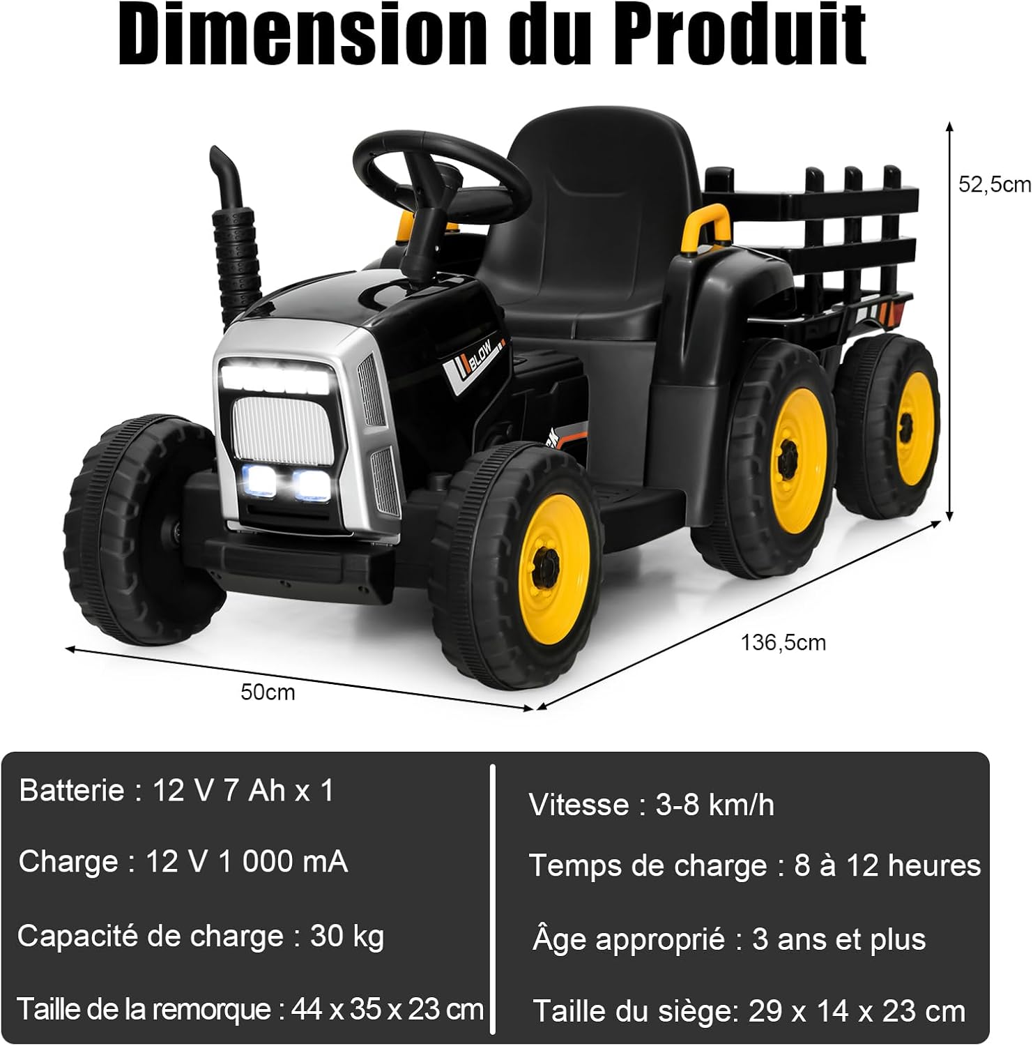 | Libellé | Tracteur electrique enfants avec remorque 12v, phare à led et musique, voiture electrique enfants noir |