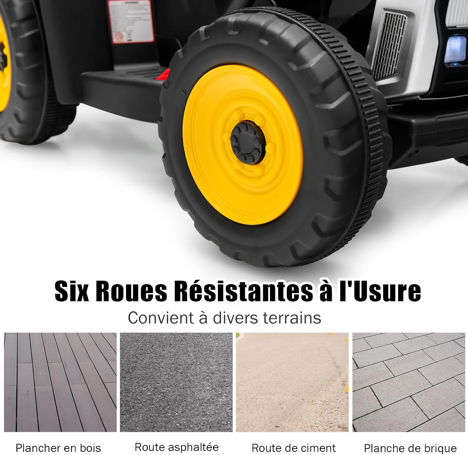 - Panneau multifonctionnel : Le tracteur possède une très large gamme de fonctionnalités, avec musique, USB et bluetooth. Le volume du son peut être réglé librement. En même temps que le jeu, l’enfant peut développer son intérêt pour la musique sans perdre de temps.