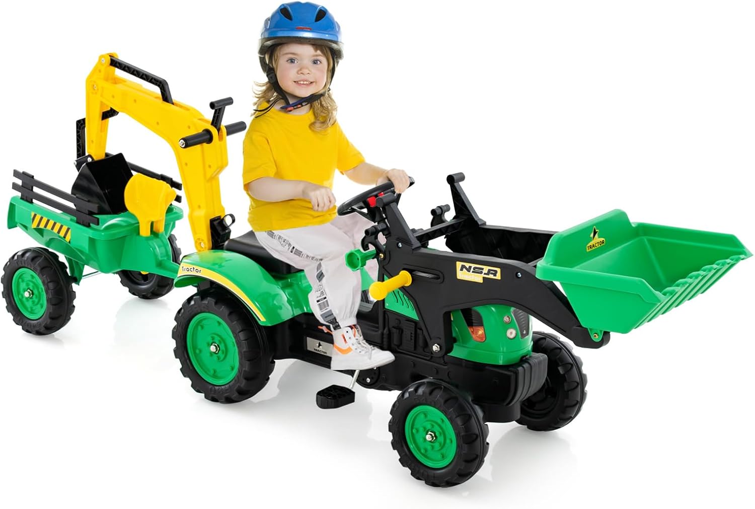 - Détail sophistiqué : Cette excavatrice autoportée peut être remorquée ou creusée avec le godet contrôlé par un levier. Les enfants peuvent ainsi s'amuser à la conduire. Il y a aussi une remorque détachable unique pour que votre enfant puisse ranger ses jouets et autres petits objets.