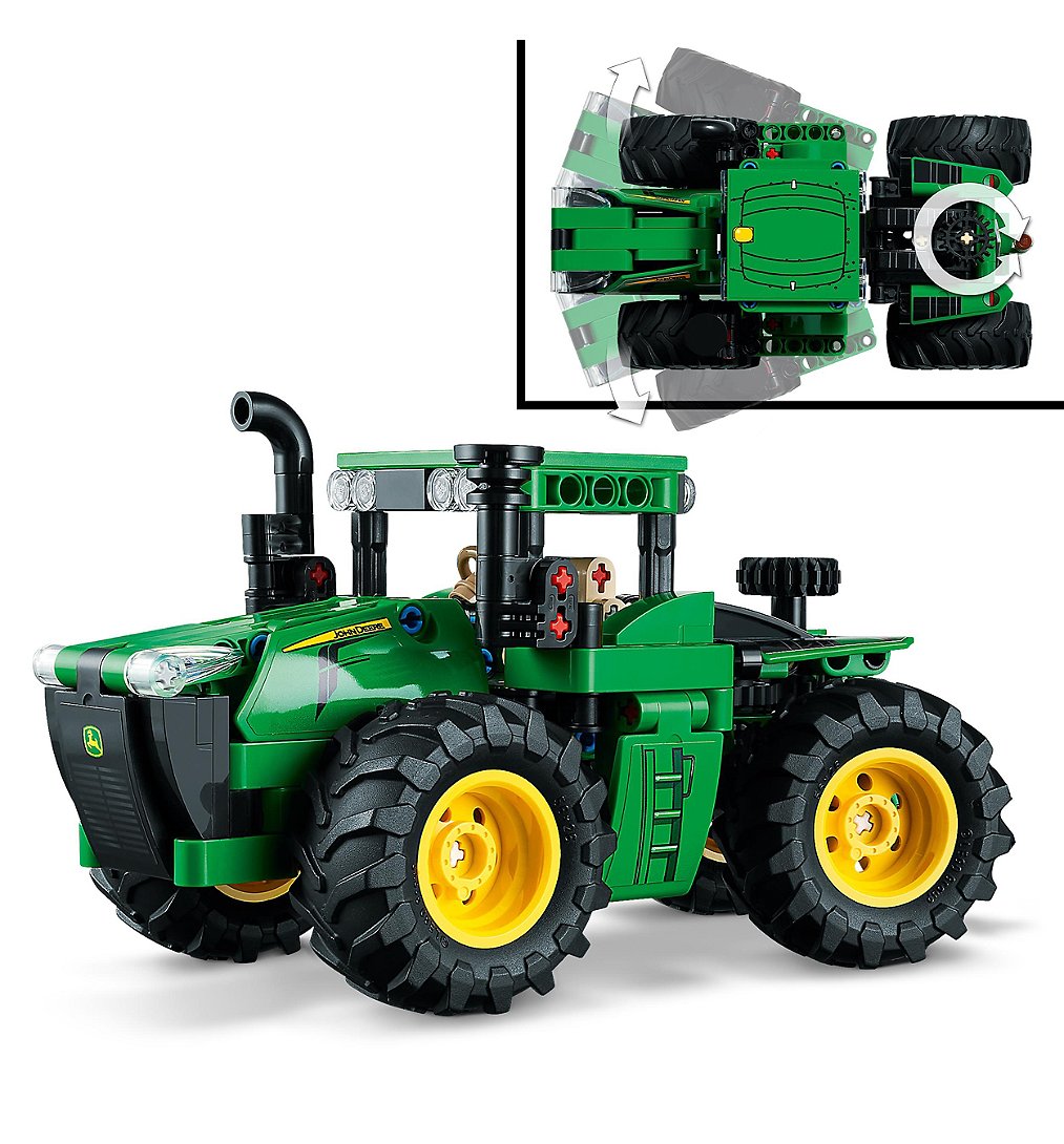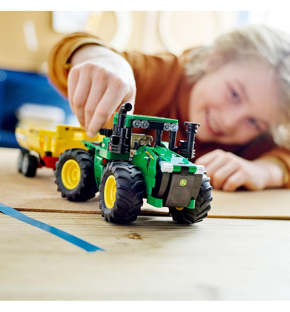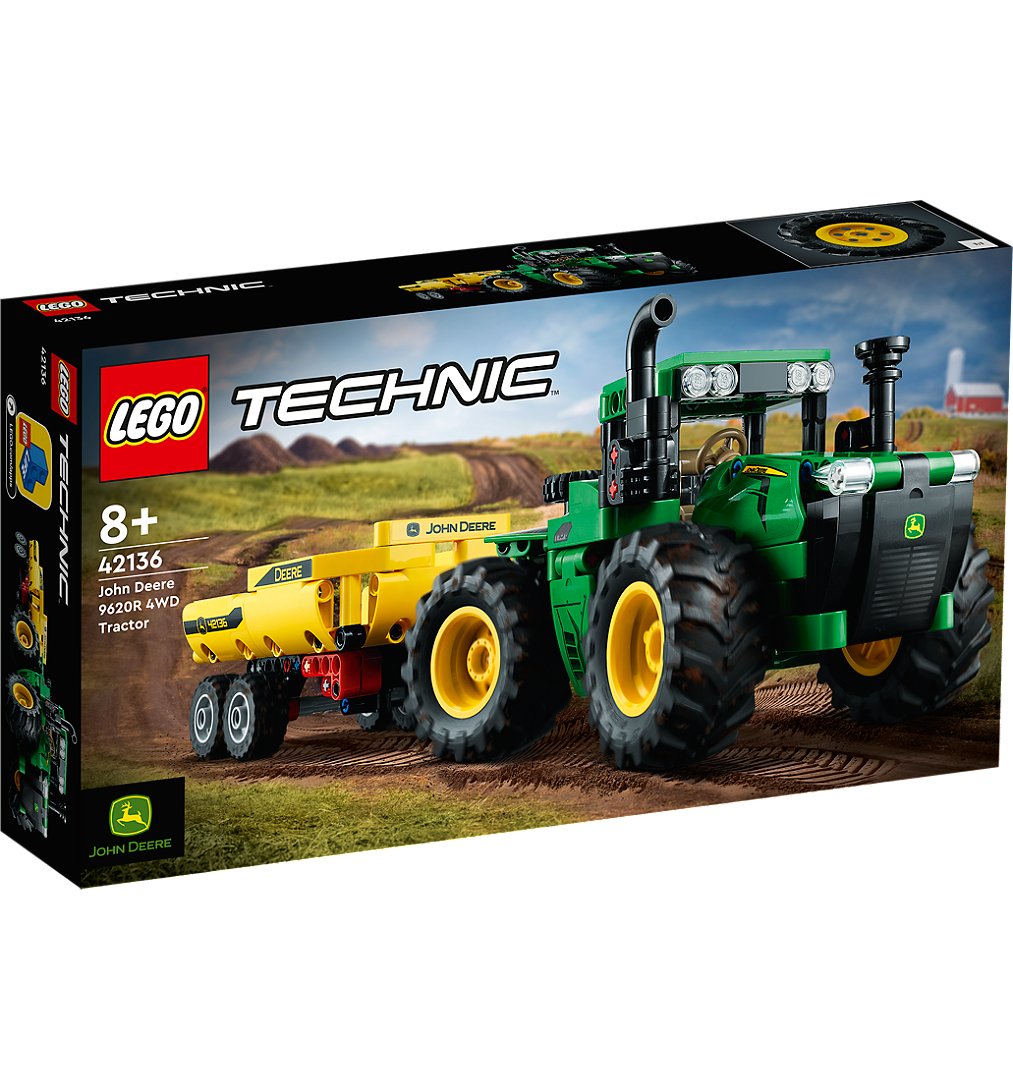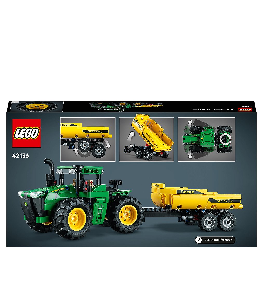 | Plus produit | Ce Tracteur John Deere 9620R 4WD LEGO® Technic avec direction articulée et remorque basculante offre un projet passionnant aux enfants qui aiment les tracteurs. |