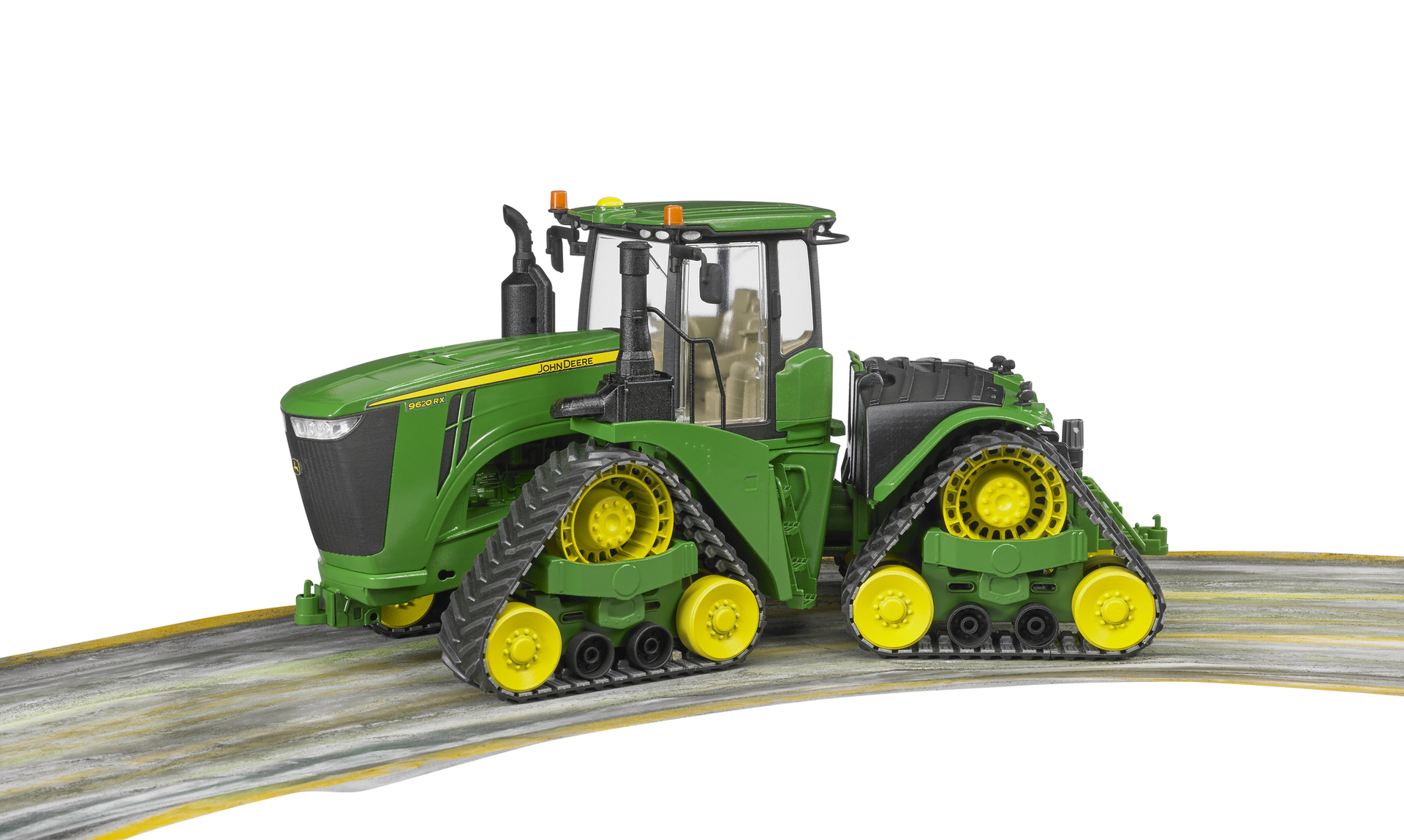 Le tracteur John Deere 9620 RX sur chenilles possède une cabine est entièrement vitrée dont les portes sont ouvrantes, afin de pouvoir y placer un conducteur. Le capot ouvrant permet de voir le bloc moteur. Le crochet d'attelage est réglable en hauteur. Dim. : 50x19x23.5 cm