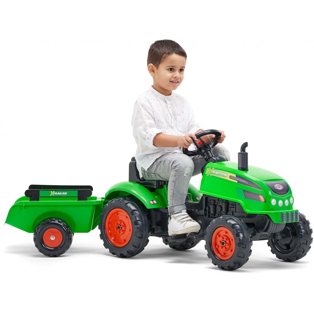 Tracteur pour enfant à pédales avec capot ouvrant et remorque X Tractor