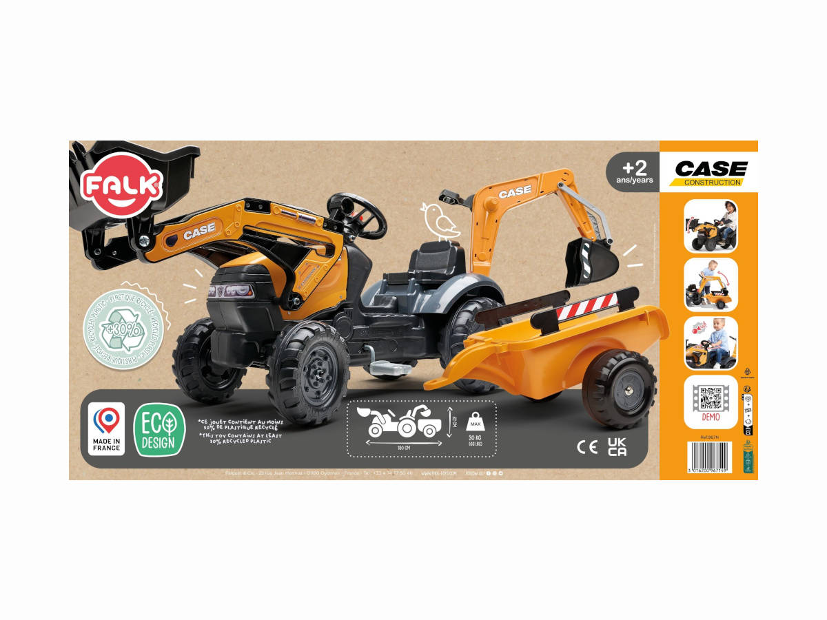 Le tractopelle à pédales Case CE avec excavatrice arrière et remorque incluse fait partie de la gamme "les petits bâtisseurs", signé de la marque Falk. Ce jouet d'extérieur 100% de fabrication Française s'utilise dès l'âge de 2 ans.