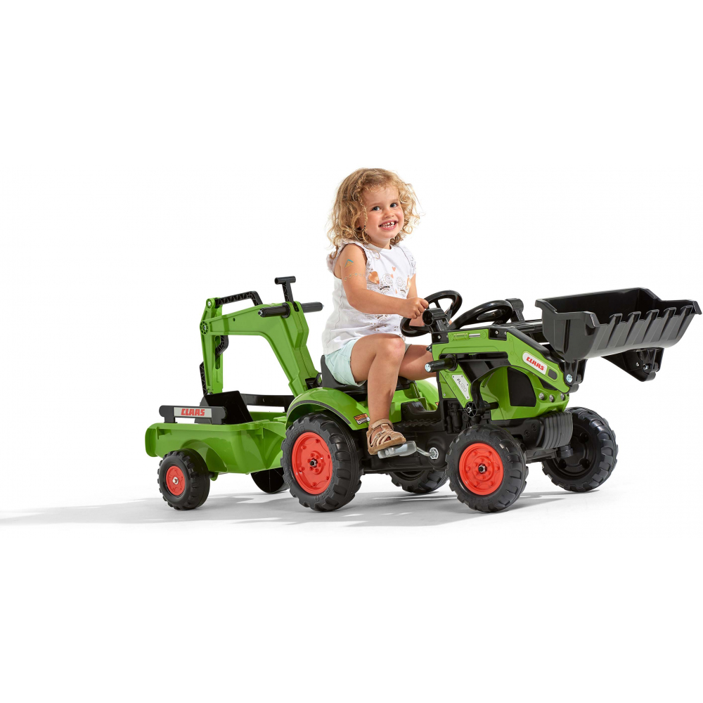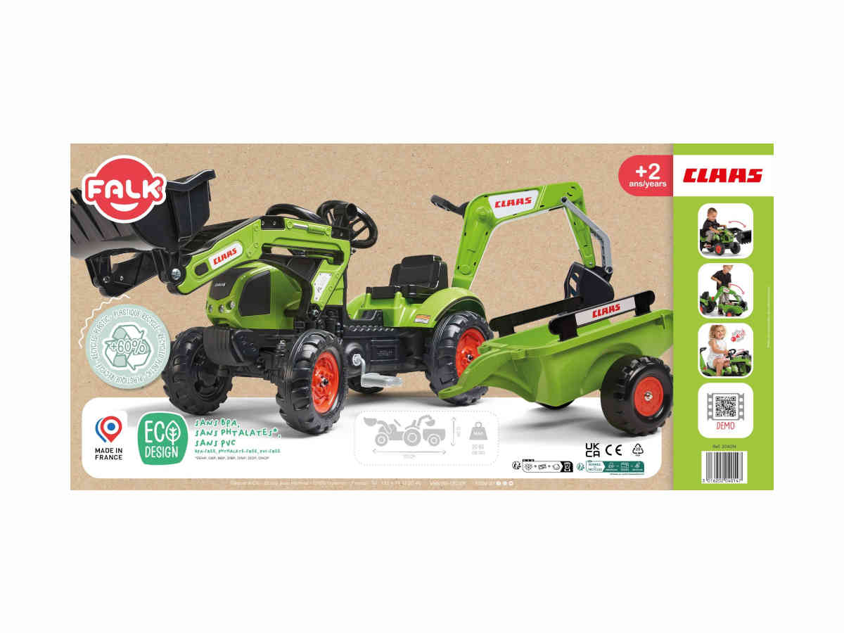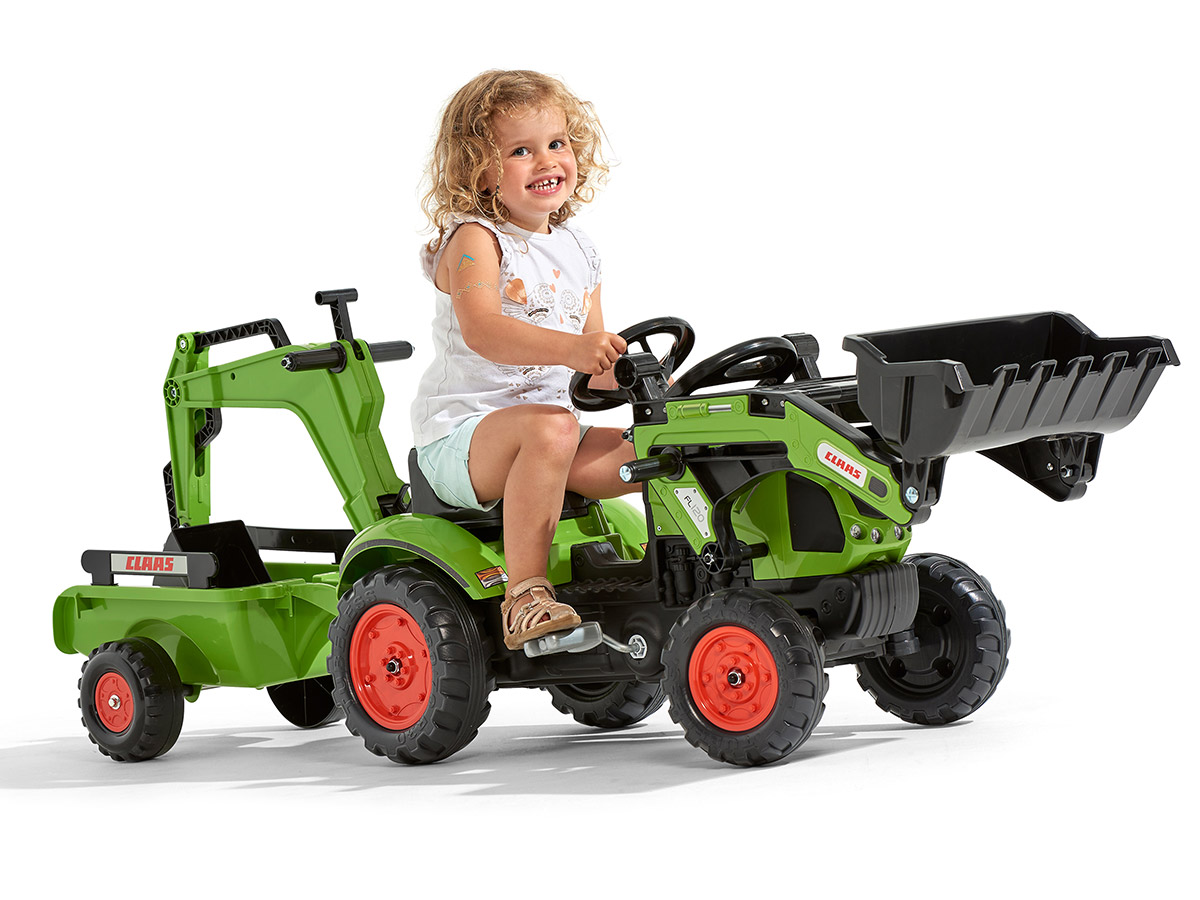 | Libellé | Tractopelle à pédales Falk Claas avec excavatrice et remorque - Vert |