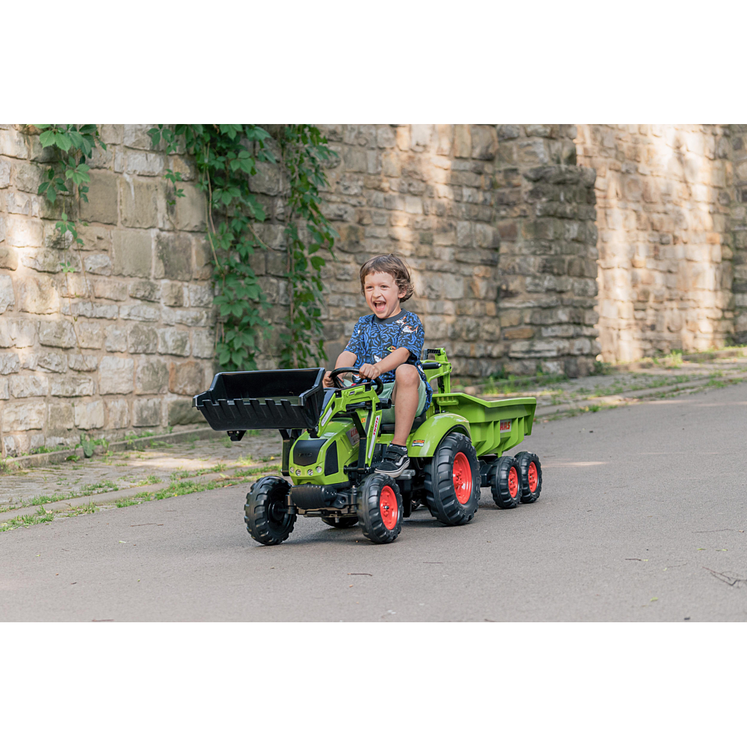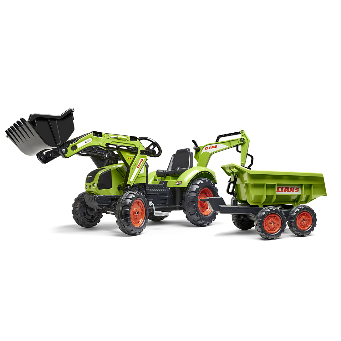 | Informations complémentaires | Véritable réplique à pédales du modèle Axos 330 équipé d'une pelle frontale - d'une selle pivotante - d'un volant directionnel avec klaxon - d'une excavatrice et d'une remorque basculante maxi , Age préconisé de 3 à 7 ans |