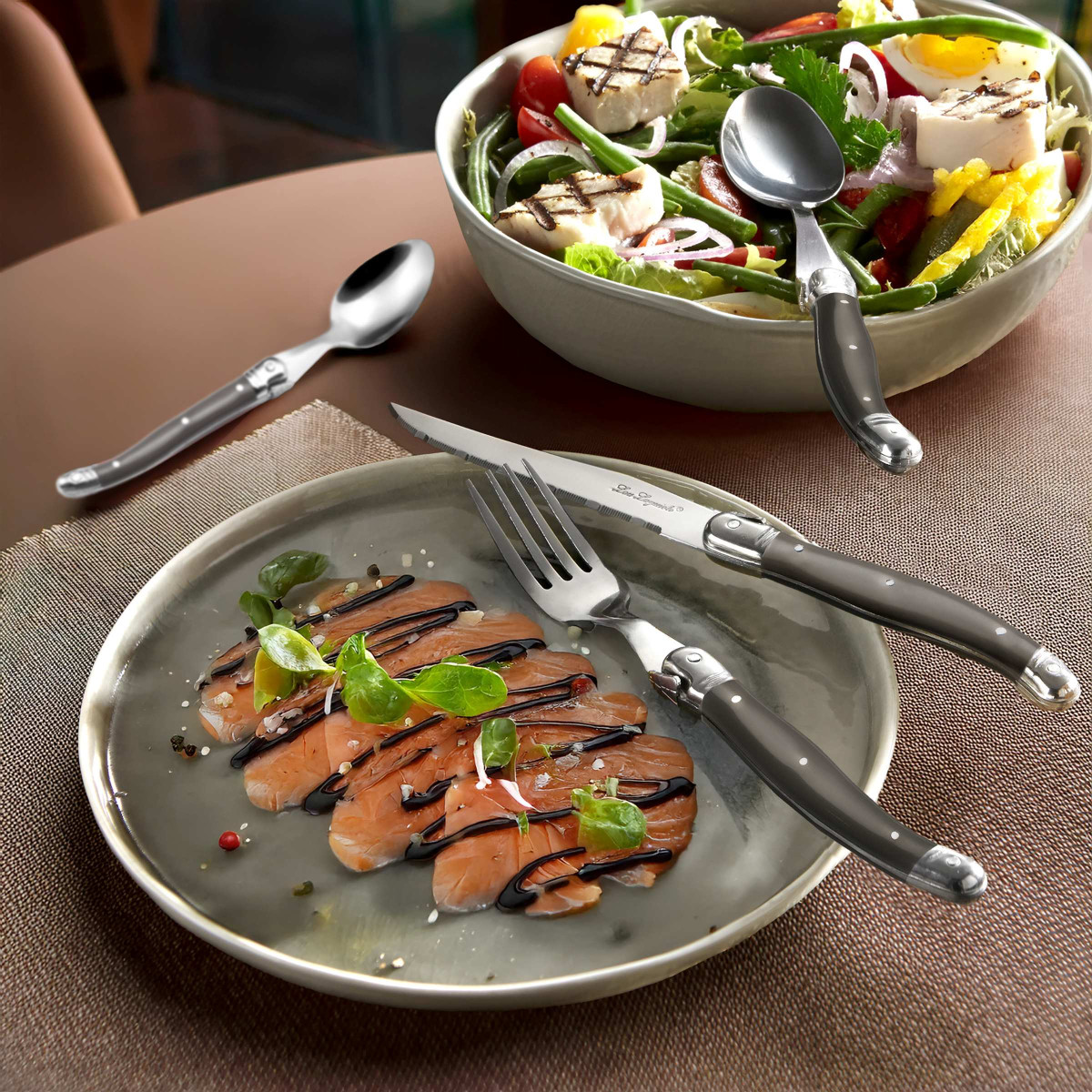 Lou Laguiole® allie la force de la Tradition et l'élégance de la Modernité. Notre gamme de couteaux Laguiole est la garantie d'une signature raffinée pour des tables authentiques au quotidien. Lou Laguiole® est une marque déposée et distribuée exclusivement par Amefa en France et dans le monde.