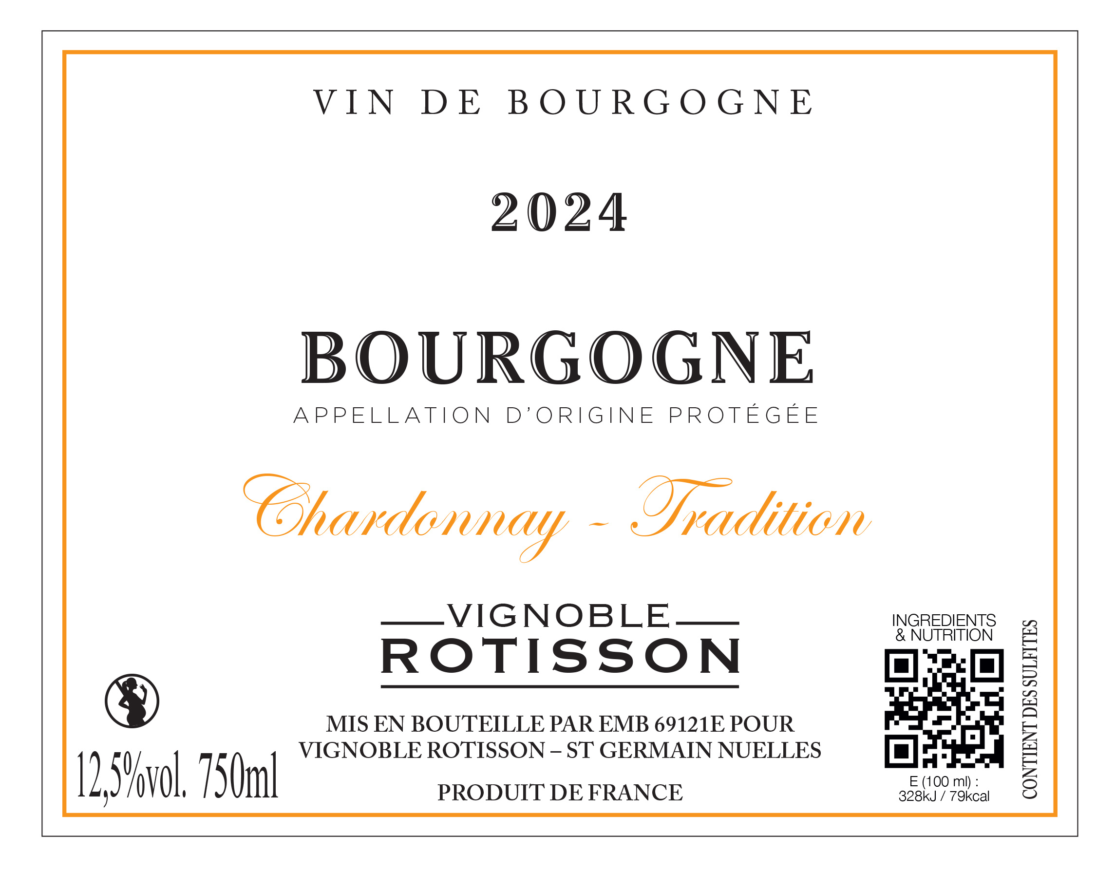 | Libellé | Tradition Vignoble Rotisson, 2024 - Bourgogne Chardonnay AOP - Blanc Sec - 75 cl |