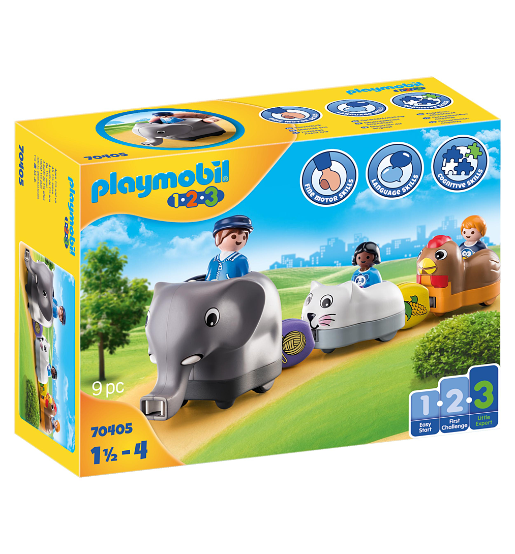 | Plus produit | - Coffret PLAYMOBIL 1.2.3 pour découvrir les apprentissages polyvalents.\n - Contient trois personnages et trois wagons en forme d\'animaux.\n - Little expert : Grâce à ce jouet, lenfant expérimente des apprentissages polyvalents comme comprendre les connexions et raconter les premières histoires. |