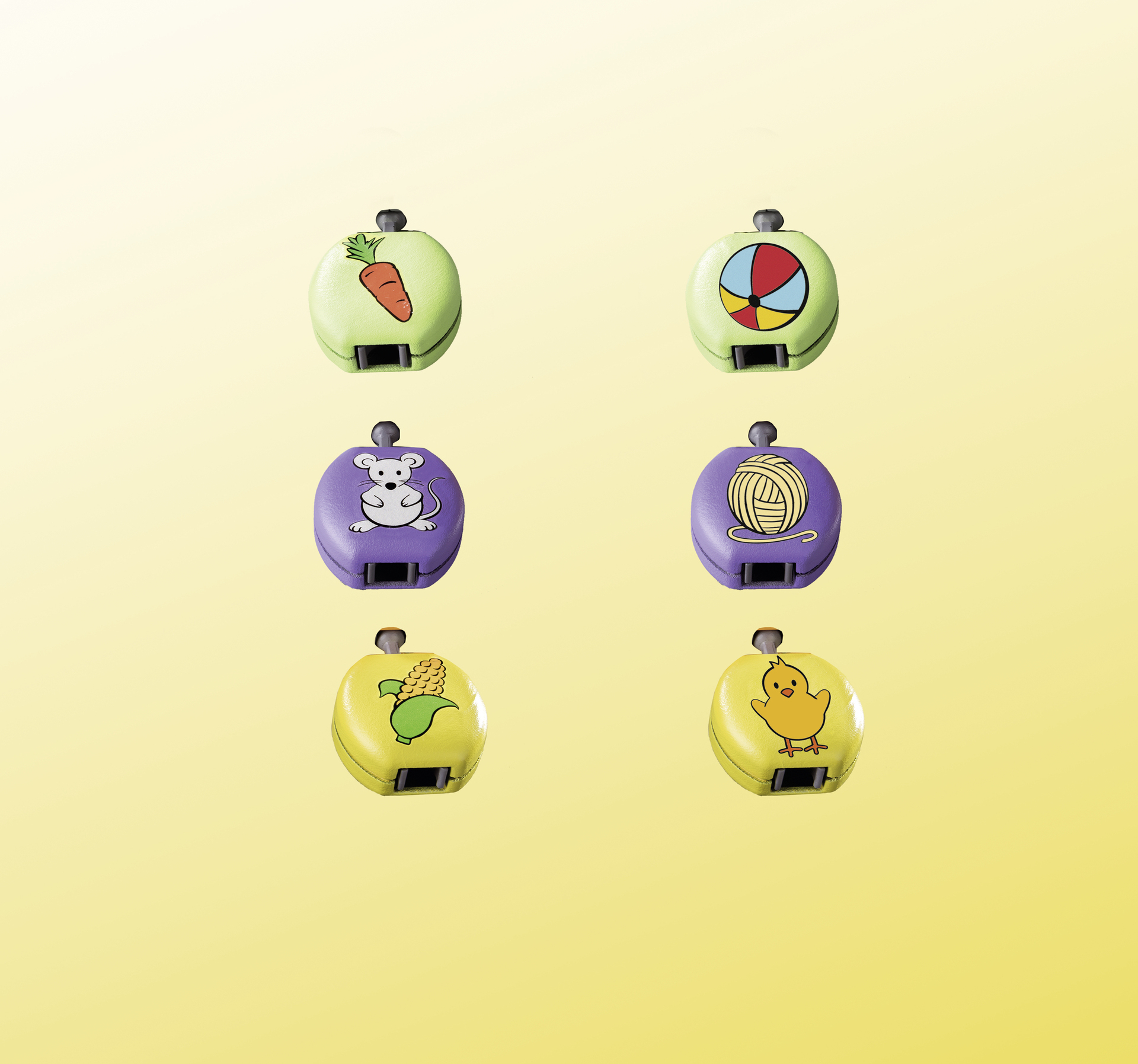 Contient 1 personnage, 2 enfants, 3 wagons en forme d'éléphant, de chat et de poule