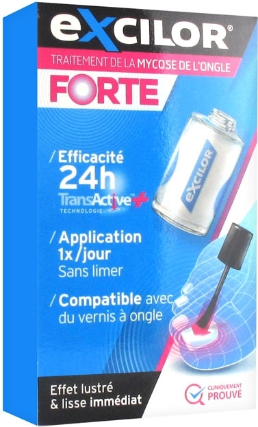 Excilor Traitement de la Mycose de l'Ongle Forte 30 ml est un traitement extra-fort contre la mycose de l'ongle, au mode d'action efficace durant 24 heures. La mycose de l'ongle se développe toujours à l'intérieur de l'ongle, ce qui rend le traitement de la mycose difficile. Excilor agit selon trois principes : - il pénètre au coeur de l'ongle pour atteindre immédiatement la mycose et faciliter une repousse saine immédiate de l'ongle, - il modifie le pH à l'intérieur de l'ongle dans le but de créer un environnement défavorable au développement des dermatophytes, - il s'applique très facilement et laisse une pellicule invisible. Il est important de débuter le traitement dès les premiers symptômes : le traitement sera plus court et l'ongle retrouvera plus rapidement son aspect initial. Excilor apporte des résultats visibles dès la repousse de l'ongle.