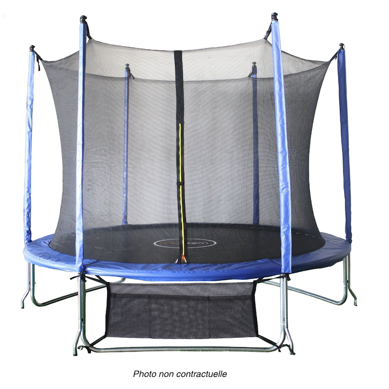 | Avertissements | ATTENTION. Poids maximum 110kg. Destiné à une utilisation extérieure exclusivement. Âge minimum : 6 ans. Toutes les agrafes, élastiques, rubans, sacs en plastique et autres matériaux d'emballage ne font pas partie du jouet. Veuillez les retirer avant de donner le jouet à l'enfant. Réservé à un usage familial. Un seul utilisateur à la fois. Risque de collision. Il est recommandé de remplacer le filet tous les ans. Ne convient pas aux enfants de moins de 36 mois. Danger d'étouffement dû à la présence de petits éléments. Pour votre sécurité, ce trampoline d'extérieur est conforme à la norme jouet (NF EN 71-14). |