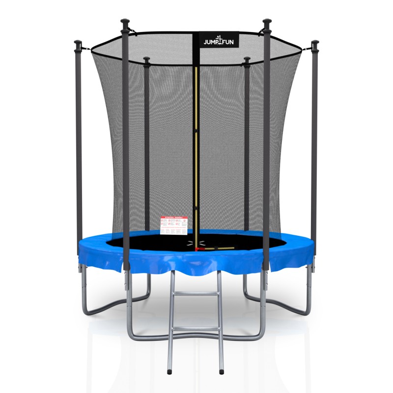 Tout l'équipement est livré pour que votre enfant puisse faire du trampoline : filet intérieur de sécurité avec fermeture zippée, matelas de protection réversible bleu et noir, échelle. Nos trampolines sont certifiés norme CE - trampoline de jardin et pour tout enfant à partir de 3 ans. Stable, Résistant le trampoline JUMP4FUN vous assure de l'amusement en toute sérénité.