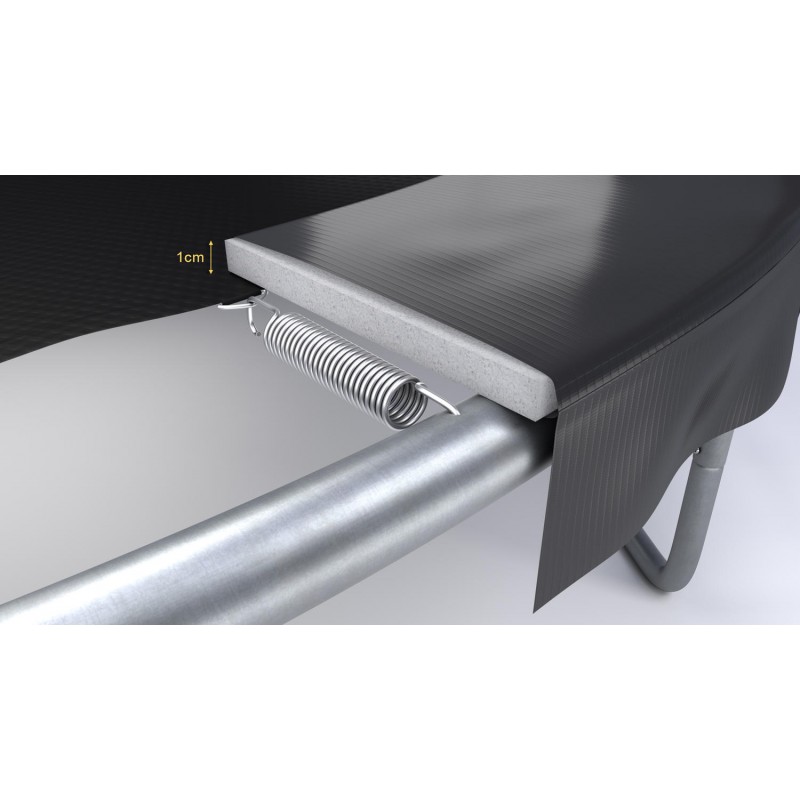 La structure du châssis est en acier galvanisé: matériau très solide et résistant. Enfin à noter les 36 ressorts qui assurent une suspension confortable et souple lors des sauts de vos enfants.