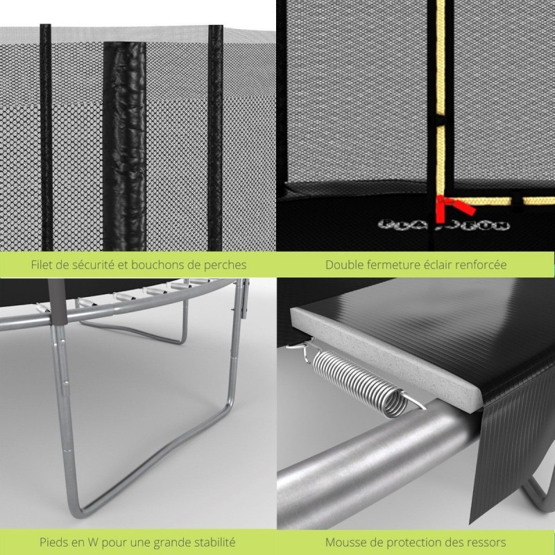 Protection: Filet de sécurité extérieur avec double fermeture éclair renforcée, pas de chute possible sur les ressorts.