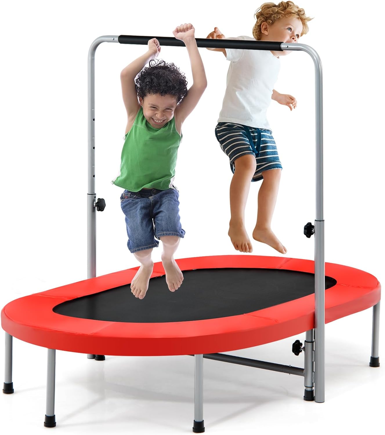 Trampoline extérieur enfant trampoline pliable poignée réglable et coussin de sécurité rebondisseur ovale