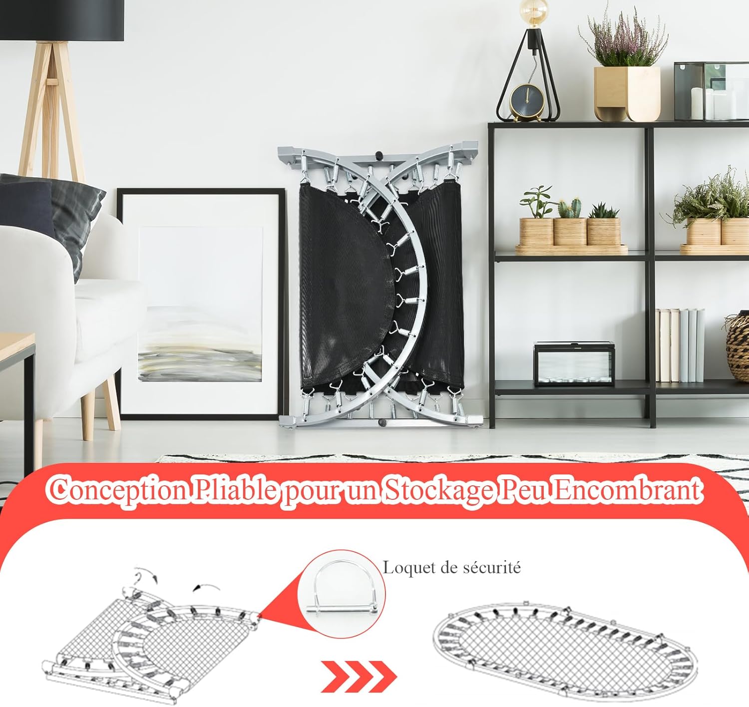 | Libellé | Trampoline extérieur enfant trampoline pliable poignée réglable et coussin de sécurité rebondisseur ovale |