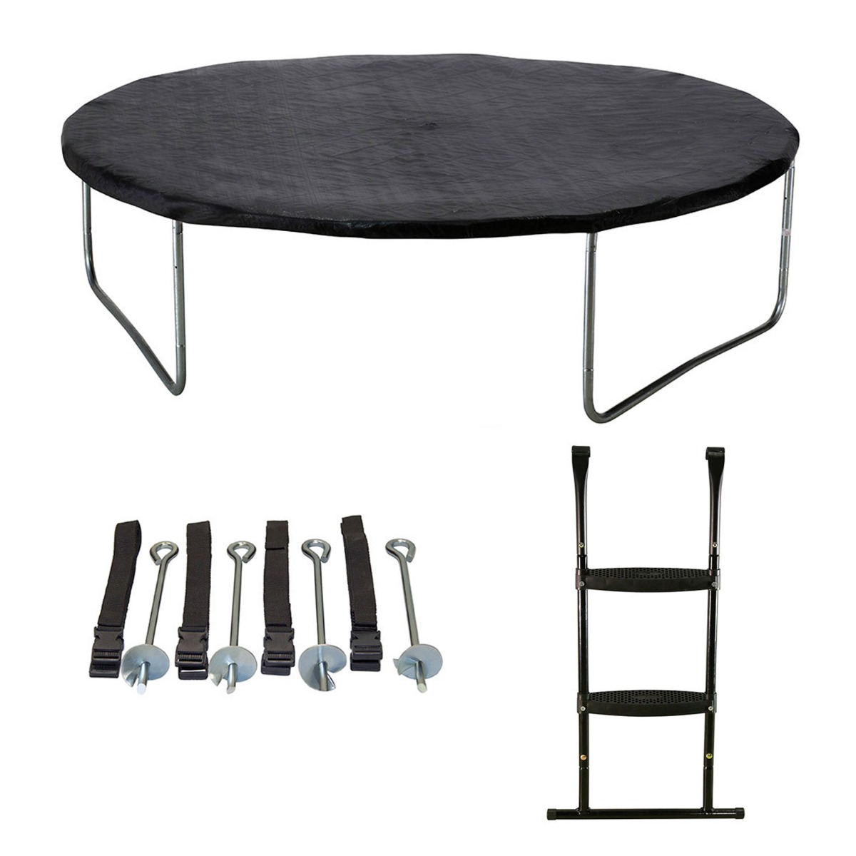 • Une couverture de propreté avec oeillet central pour l'évacuation des eaux de pluie et pour protéger votre trampoline des intempéries.