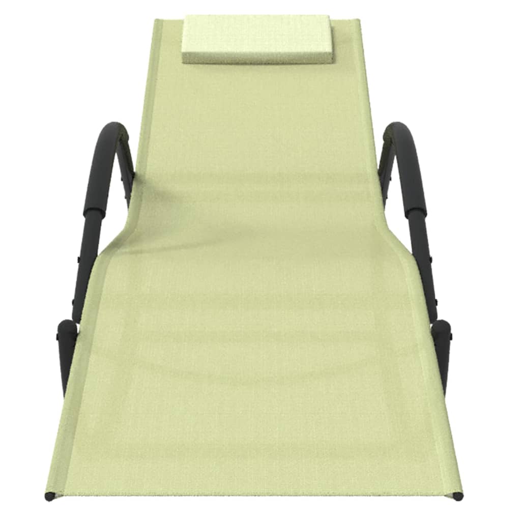 Transat chaise longue bain de soleil lit de jardin terrasse meuble d'extérieur à bascule crème acier et t