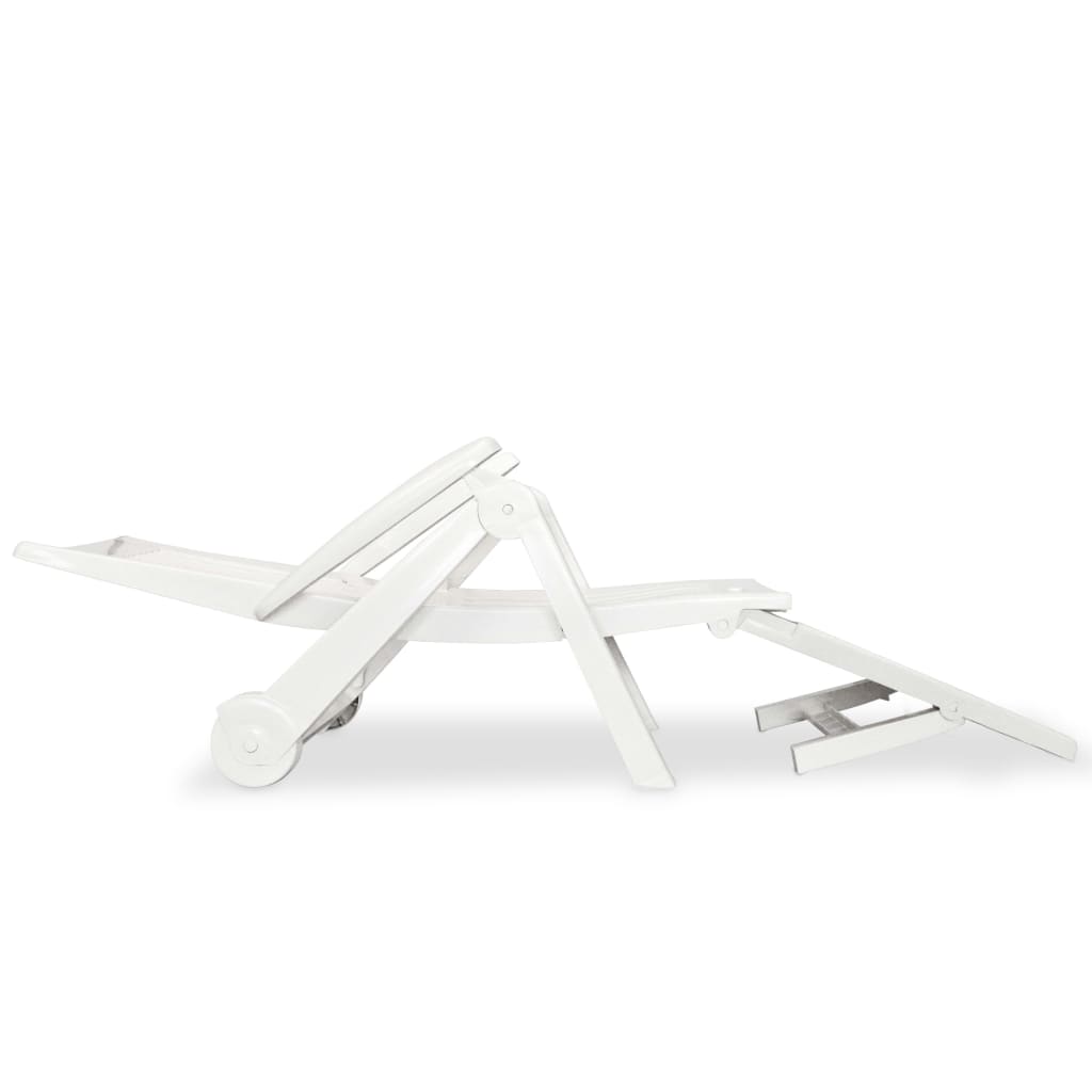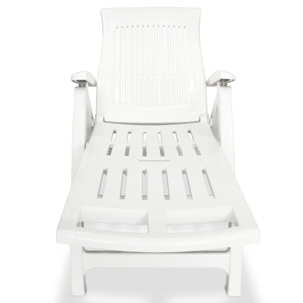 Libellé Transat chaise longue bain de soleil lit de jardin terrasse meuble d'extérieur avec repose-pied plastique blanc 02_0012588