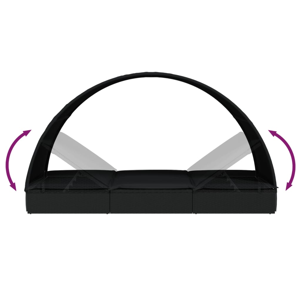 | Libellé | Transat chaise longue bain de soleil lit de jardin terrasse meuble d'extérieur avec toit rond noir 211x57x140 cm résine tressée 02_0012697 |
