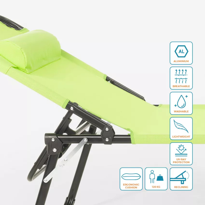 Profitez d'une expérience de détente absolue grâce à cette chaise longue pliante, conçue pour s'adapter à tous les environnements extérieurs. Fabriquée avec une structure en aluminium anodisé, elle combine robustesse et durabilité. Le tissu en textilène respirant assure un confort optimal. De plus, sa légèreté et sa facilité de pliage en font le compagnon idéal pour vos moments en plein air. Savourez le soleil avec élégance et fiabilité !
