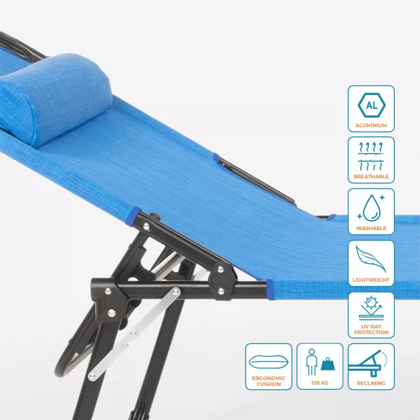 Chaise longue pliante en aluminium de plage.