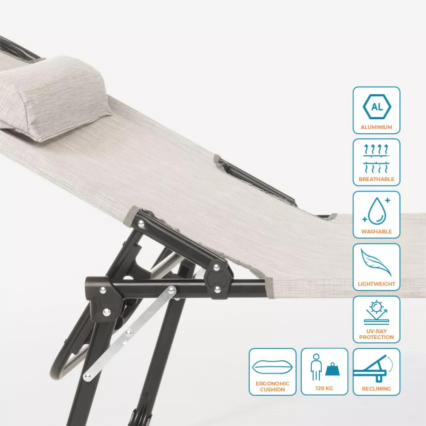 Chaise longue pliante en aluminium de plage.