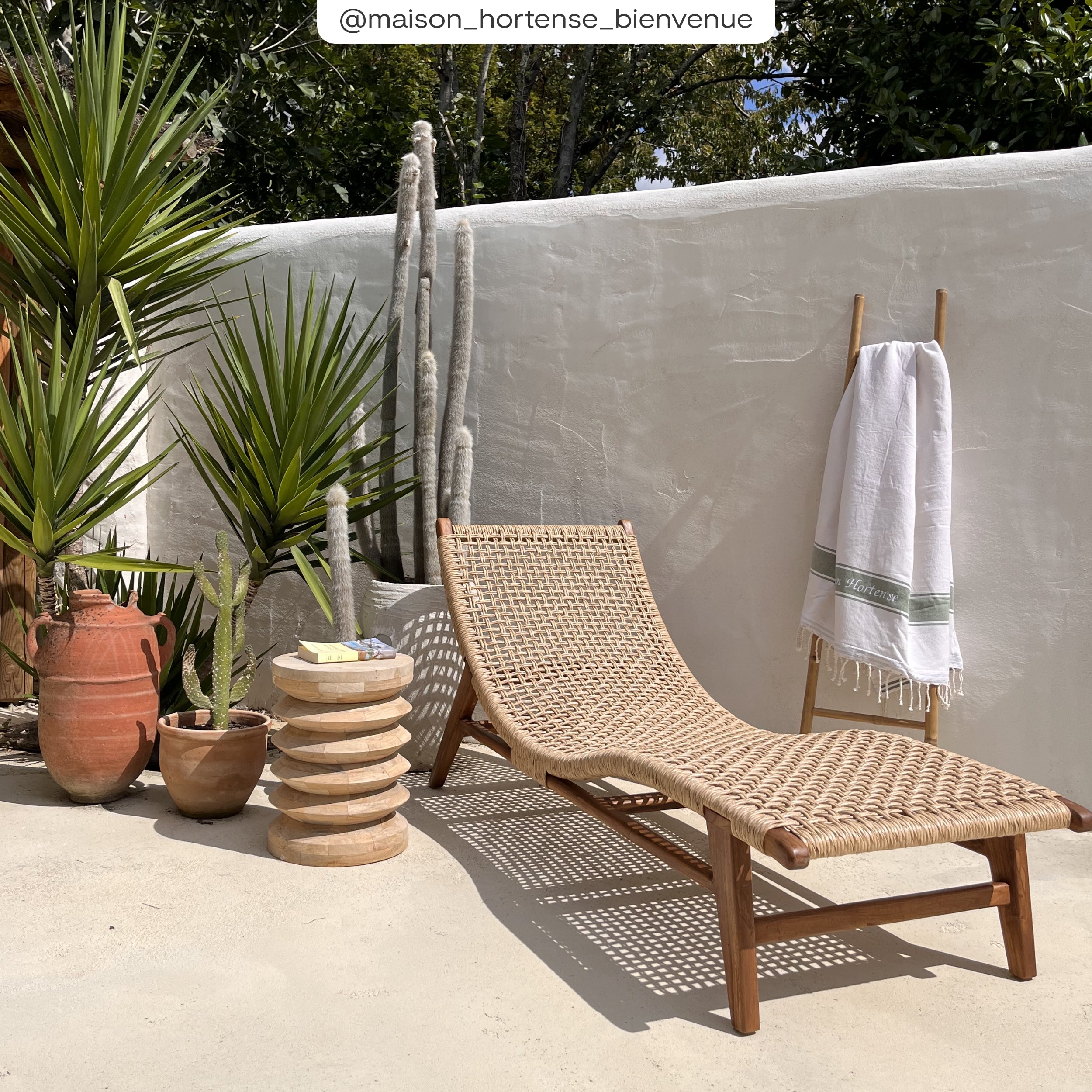 Une forme de vague va booster votre déco. Ce transat apporte une touche exotique à nos espaces extérieurs. Vous pourrez ainsi miser sur une atmosphère bohème au charme indonésien. La couleur beige de cet élément s’accorde aux styles les plus divers. Dans un salon ou une salle de jeu, vous apprécierez sa présence. Une véranda pourra aussi accueillir ce must du farniente.