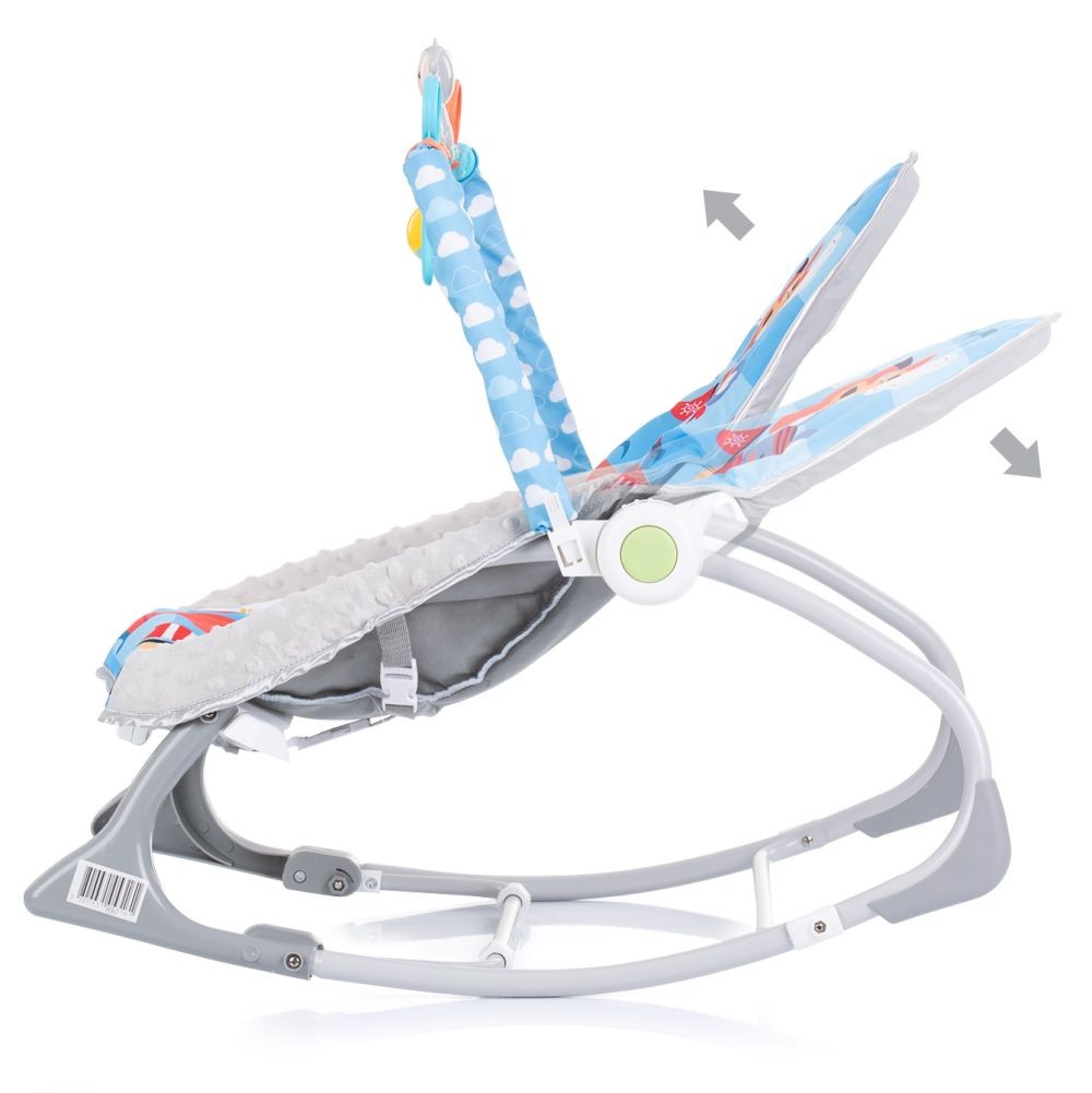 Le transat musical Chipolino BABY SPA est parfait pour les bébés de la naissance à 36 mois ou 18 kg, où vous pourrez profiter de vos premiers moments de divertissement, en toute sécurité et confort. Le bébé s'amusera avec la barre de jouets et se divertira grâce aux différentes mélodies programmées dans la boîte à musique. De plus, le hamac musical BABY SPA dispose d'une fonction de vibration relaxante. Pour les moments de repos, nous pouvons adapter le dossier, réglable en deux positions. Le hamac musical BABY SPA servira de fauteuil à bascule pour les bébés jusqu'à 9 kg, ou jusqu'à environ 6 mois lorsqu'ils ne peuvent pas s'asseoir tout seuls, grâce à sa fonction de bascule. Pour les enfants plus âgés qui s'assoient seuls, il peut être utilisé comme chaise. Harnais de sécurité 3 points. Fabriqué conformément à la norme européenne EN 12790. Le produit est livré dans une jolie boîte cadeau.