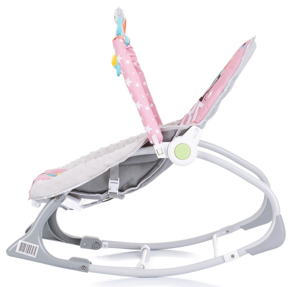 Le transat musical Chipolino BABY SPA est parfait pour les bébés de la naissance à 36 mois ou 18 kg, où vous pourrez profiter de vos premiers moments de divertissement, en toute sécurité et confort. Le bébé s'amusera avec la barre de jouets et se divertira grâce aux différentes mélodies programmées dans la boîte à musique. De plus, le hamac musical BABY SPA dispose d'une fonction de vibration relaxante. Pour les moments de repos, nous pouvons adapter le dossier, réglable en deux positions. Le hamac musical BABY SPA servira de fauteuil à bascule pour les bébés jusqu'à 9 kg, ou jusqu'à environ 6 mois lorsqu'ils ne peuvent pas s'asseoir tout seuls, grâce à sa fonction de bascule. Pour les enfants plus âgés qui s'assoient seuls, il peut être utilisé comme chaise. Harnais de sécurité 3 points. Fabriqué conformément à la norme européenne EN 12790. Le produit est livré dans une jolie boîte cadeau.