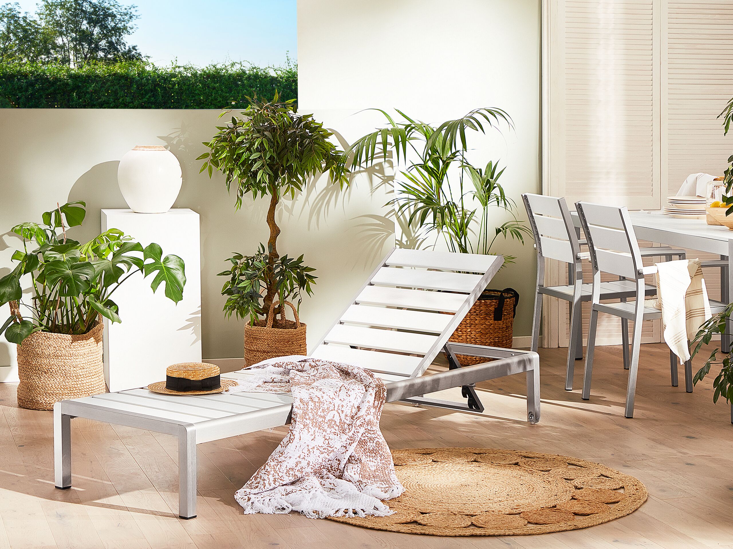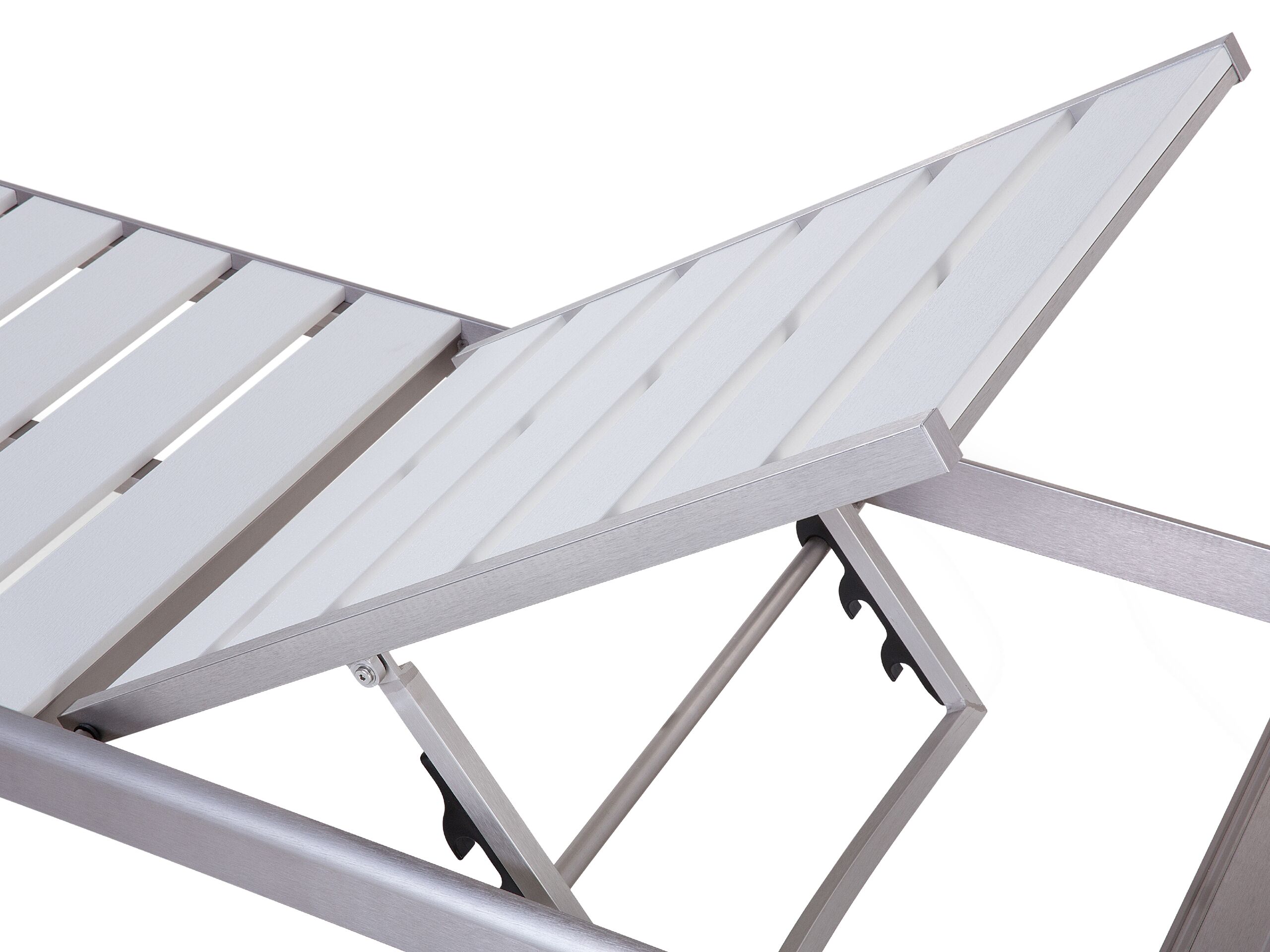 Caractéristiques clés: Dossier réglable en 4 positions, roulettes en nylon qui ne rayent pas le sol, Résiste à toutes conditions climatiques, UV Résistance, Structure inoxydable stable, S'incline entièrement à plat