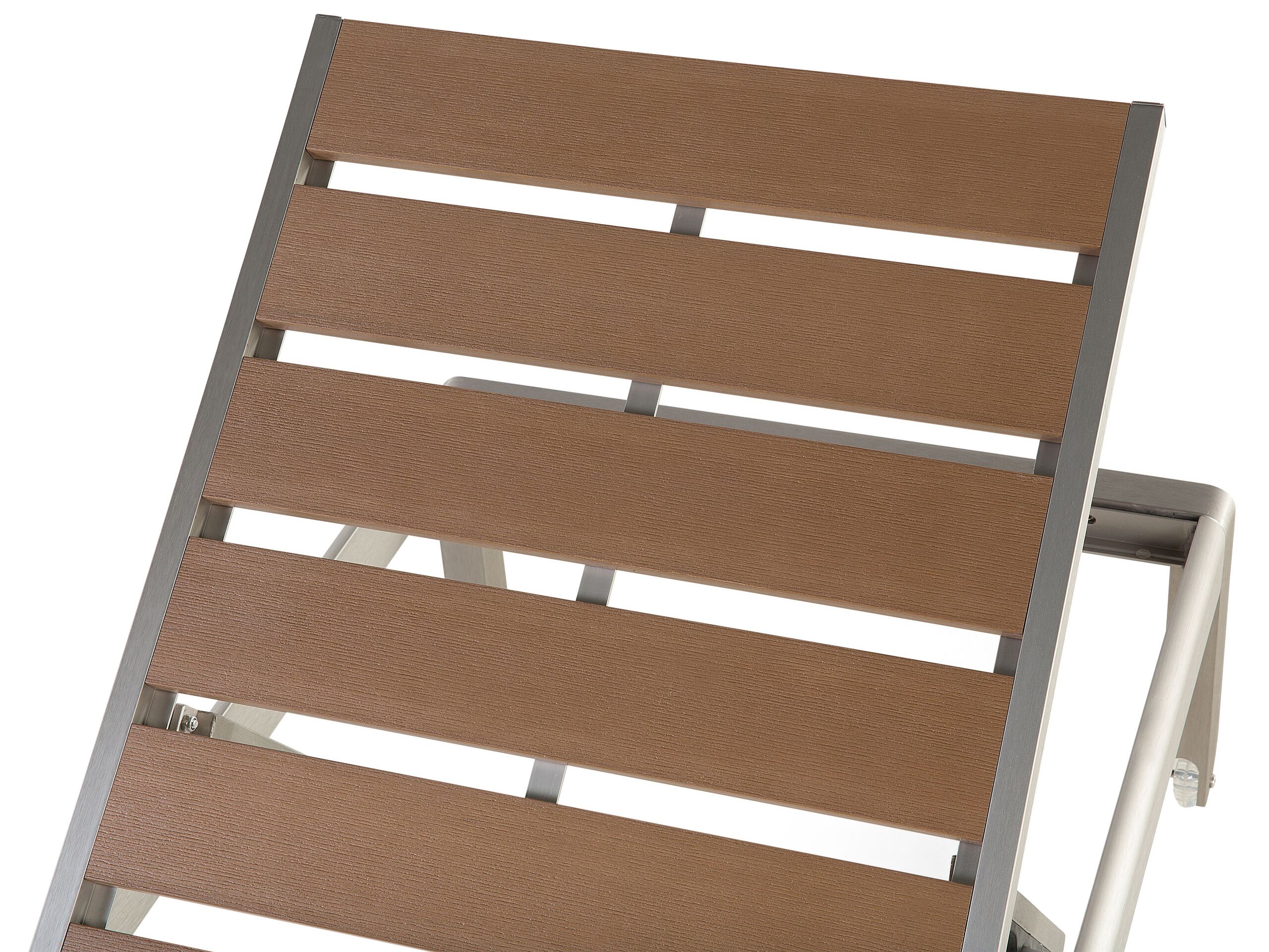 Transat de jardin. Une chaise longue moderne conçue avec un dossier réglable en 4 positions pour un confort absolu. Il est fabriqué en bois plastique résistant aux intempéries, ce qui constitue une alternative écologique aux meubles en bois traditionnels. Ses lignes pures et son design simple s'intègrent parfaitement à tout décor extérieur moderne de patio, balcon ou jardin.