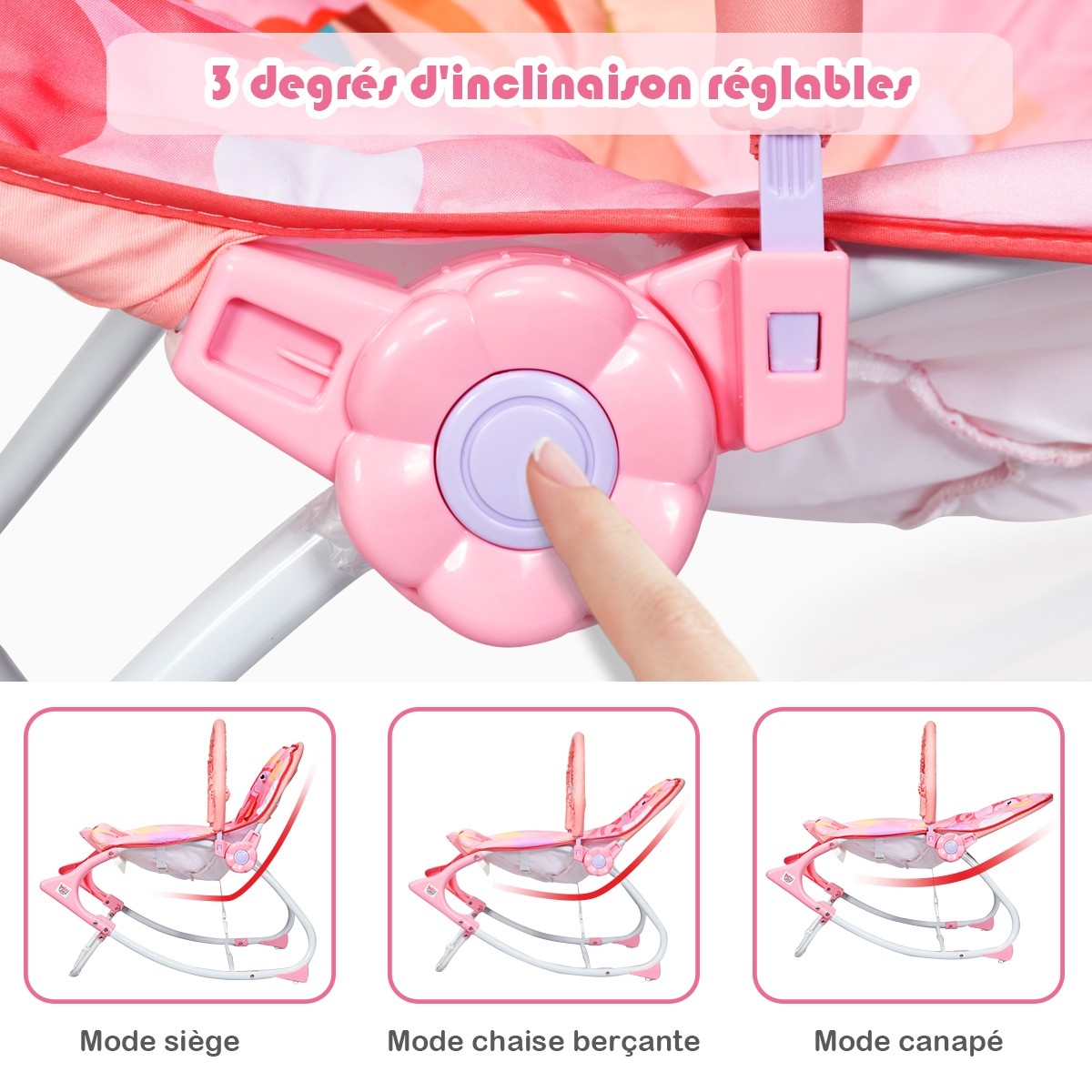 Transat pour bébés avec 2 modes de vibration angle ajustable rose
