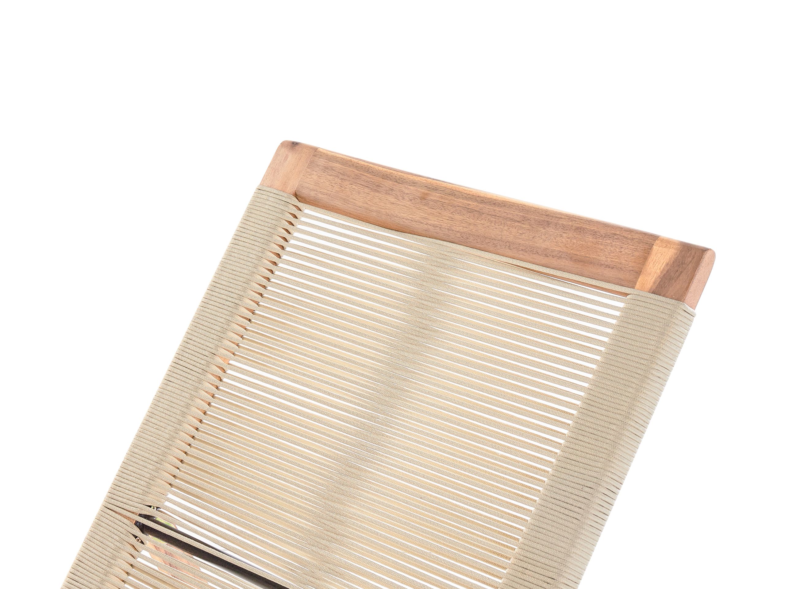 Bain de soleil avec dossier réglable. Créez une retraite sereine en plein air avec ce transat élégant, un complément parfait pour tout jardin, patio ou balcon. Fabriqué en bois d'acacia durable, il garantit la stabilité et un bel aspect naturel. L'assise en corde tressée ajoute à la fois confort et caractère, tandis que le dossier réglable permet une relaxation personnalisée.