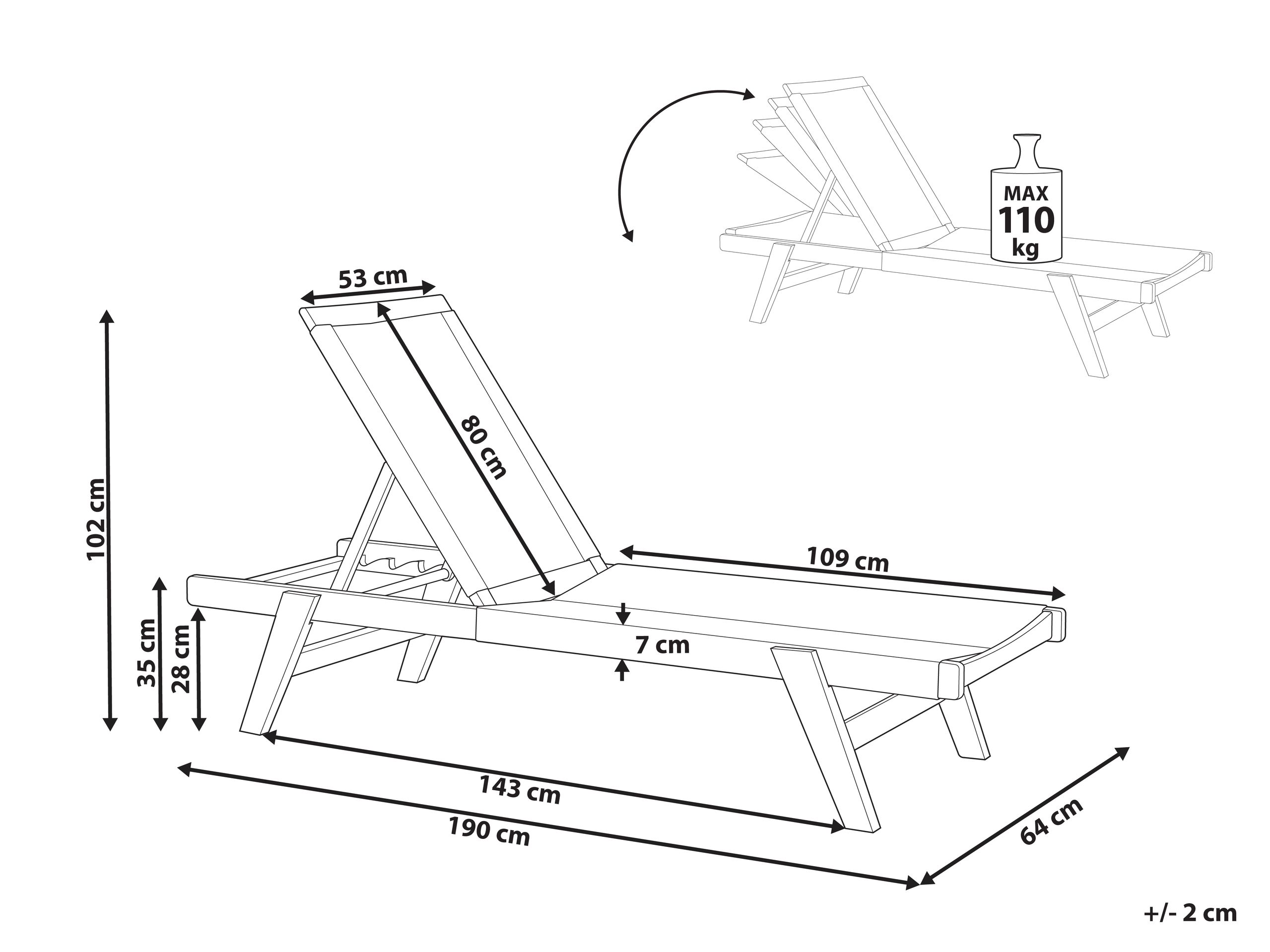 Caractéristiques clés: Dossier réglable en 5 positions, Style classique, Chaque pièce est unique, grâce au grain et nœuds naturels, Une conception solide et une excellente finition, De haute qualité, Pour préserver la qualité du produit, il faut le protéger de l'eau et de la pluie.