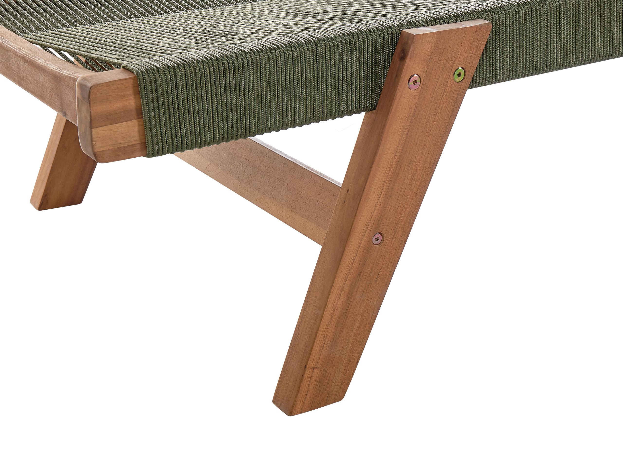 Bain de soleil avec dossier réglable. Créez une retraite sereine en plein air avec ce transat élégant, un complément parfait pour tout jardin, patio ou balcon. Fabriqué en bois d'acacia durable, il garantit la stabilité et un bel aspect naturel. L'assise en corde tressée ajoute à la fois confort et caractère, tandis que le dossier réglable permet une relaxation personnalisée.