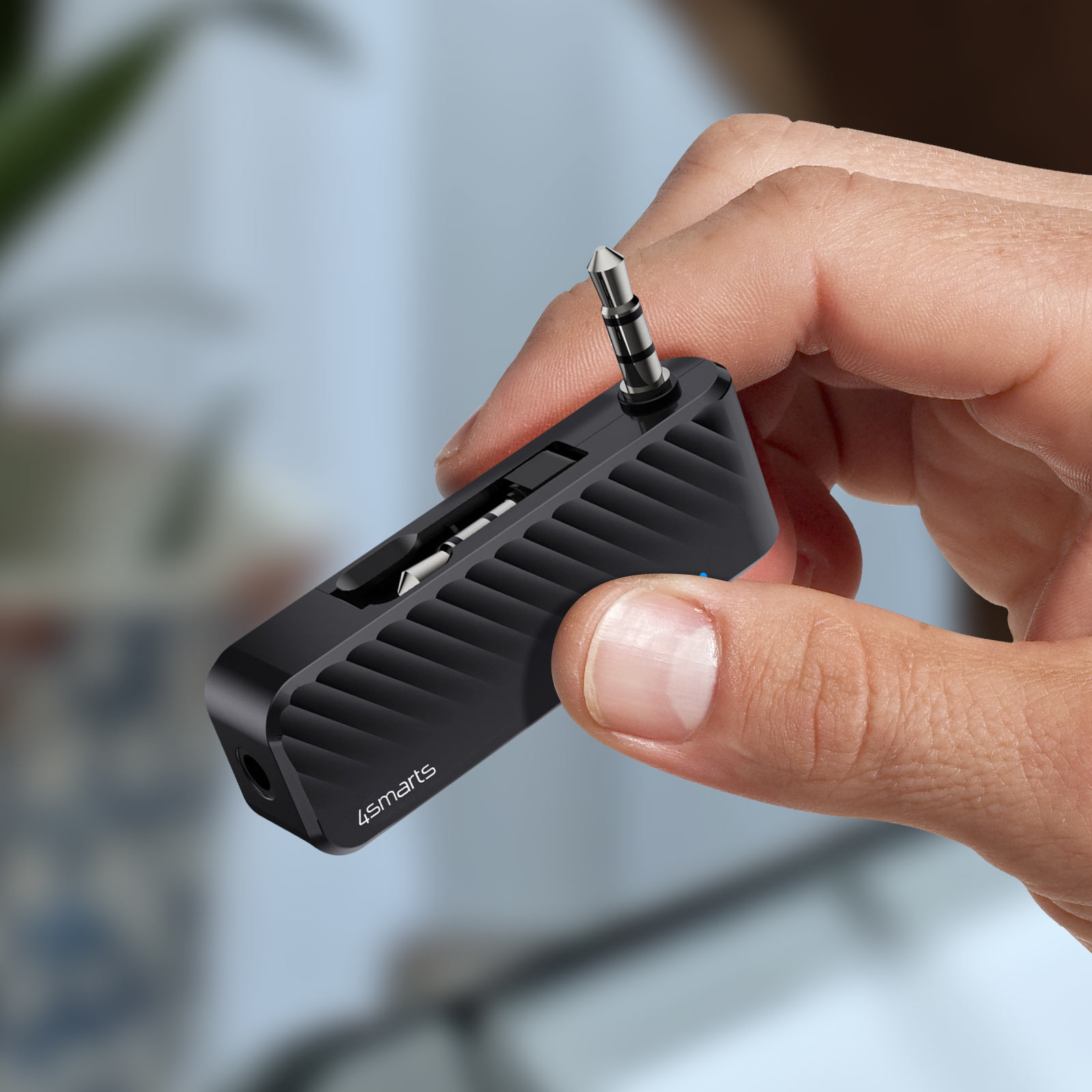 Transmetteur audio signé 4smarts pour transférer les sons de votre appareil Jack vers accessoires audio Bluetooth. Double prise jack 3.5mm rabattable. Mode avion. Technologie Bluetooth 5.1 pour un appairage instantanée et un son de qualité. Format compact
