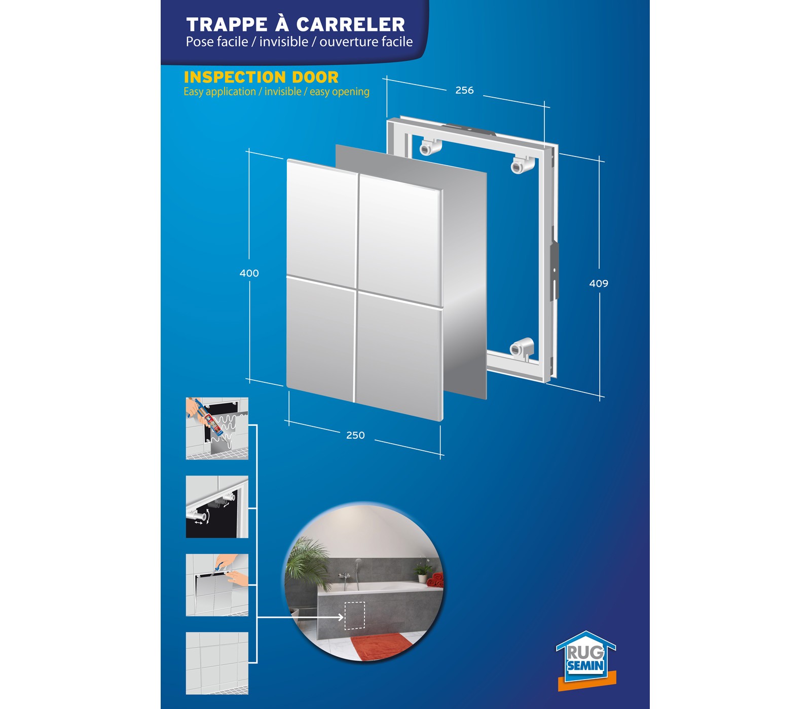 Libellé Trappe de Visite à Carreler Semin - 400 mm x 250 mm - Accès sous Baignoire et Pièces Humides