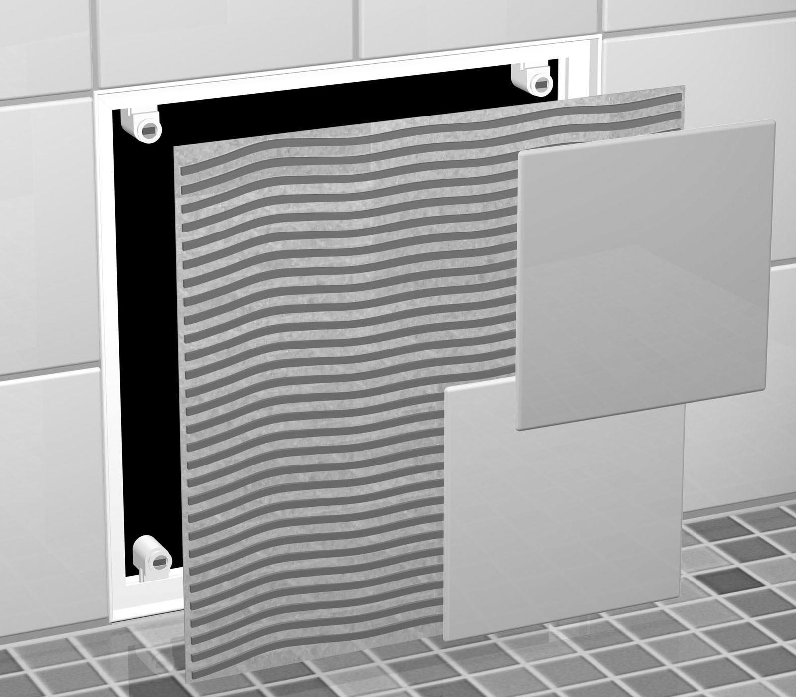 Cette trappe à carreler avec fermeture magnétique est prête à recevoir du carrelage.