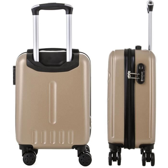 TRAVEL WORLD Ensemble de 3 valises 46/56/66cm Champagne, Matiere ABS, systeme trolley en aluminium ajustable en hauteur avec bouton poussoir - Serrure a code intégrée a la valise - Systeme trolley multi positions - 8 roues multi directionnelles tres silencieuses avec une rotation sur 360° - Poignées ergonomiques (dessus et côté) pour un portage main - Intérieur Multi poches-2,5/3,2/3,9kg, 35/56/87L