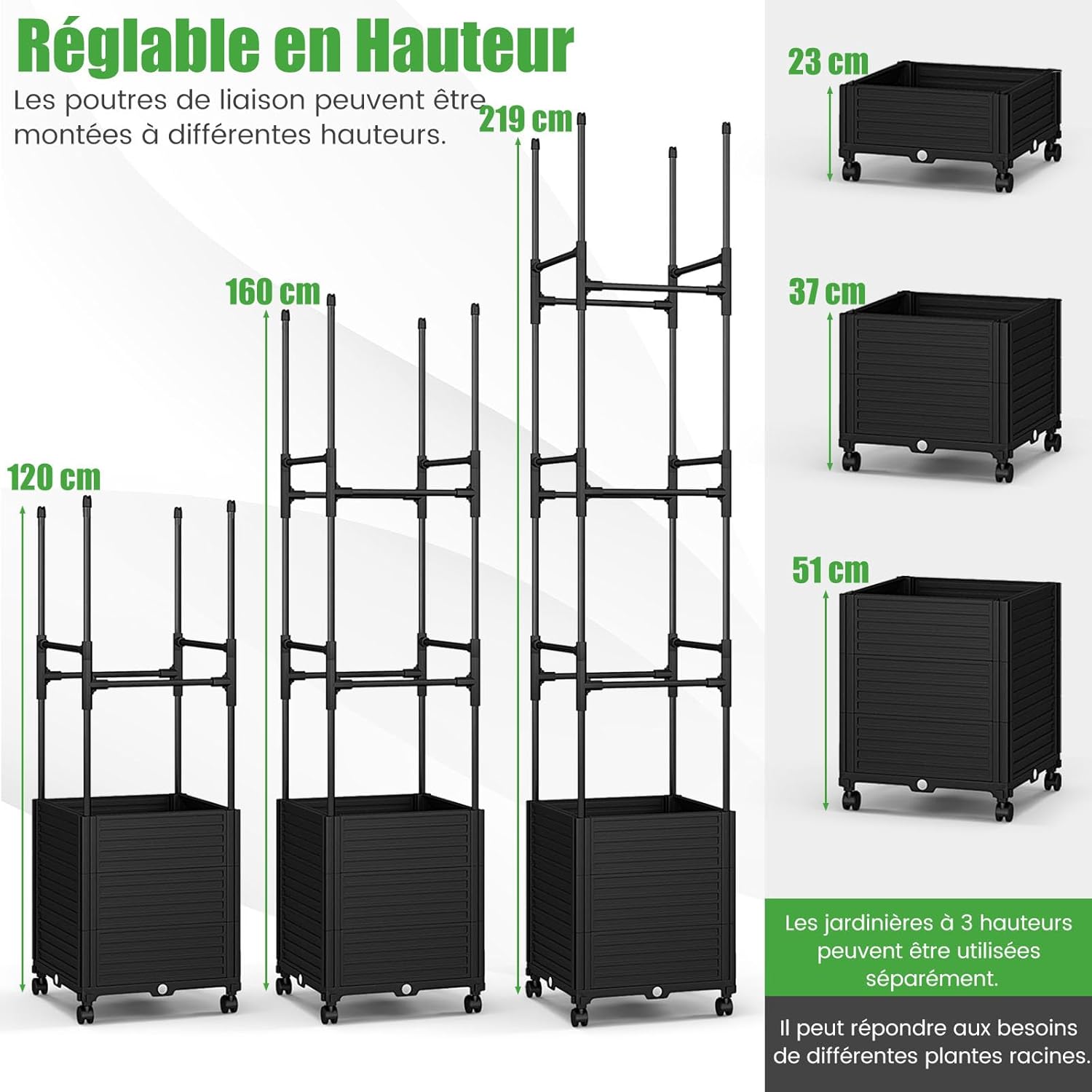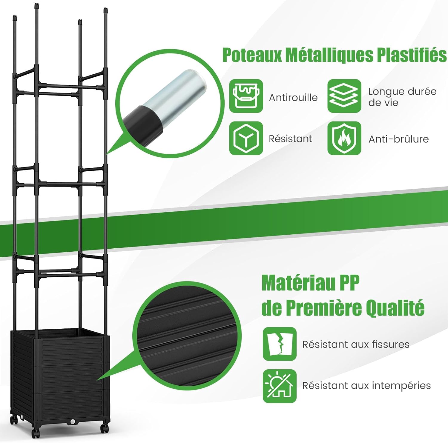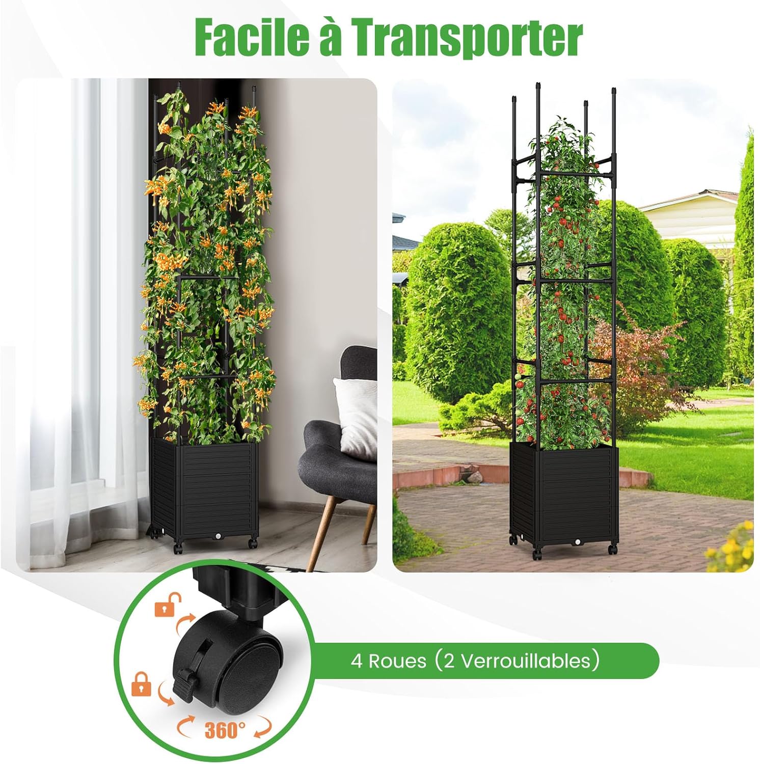 Treillis plantes grimpantes 219 cm avec jardinière treillis avec carré potager,cage à tomates à roulettes